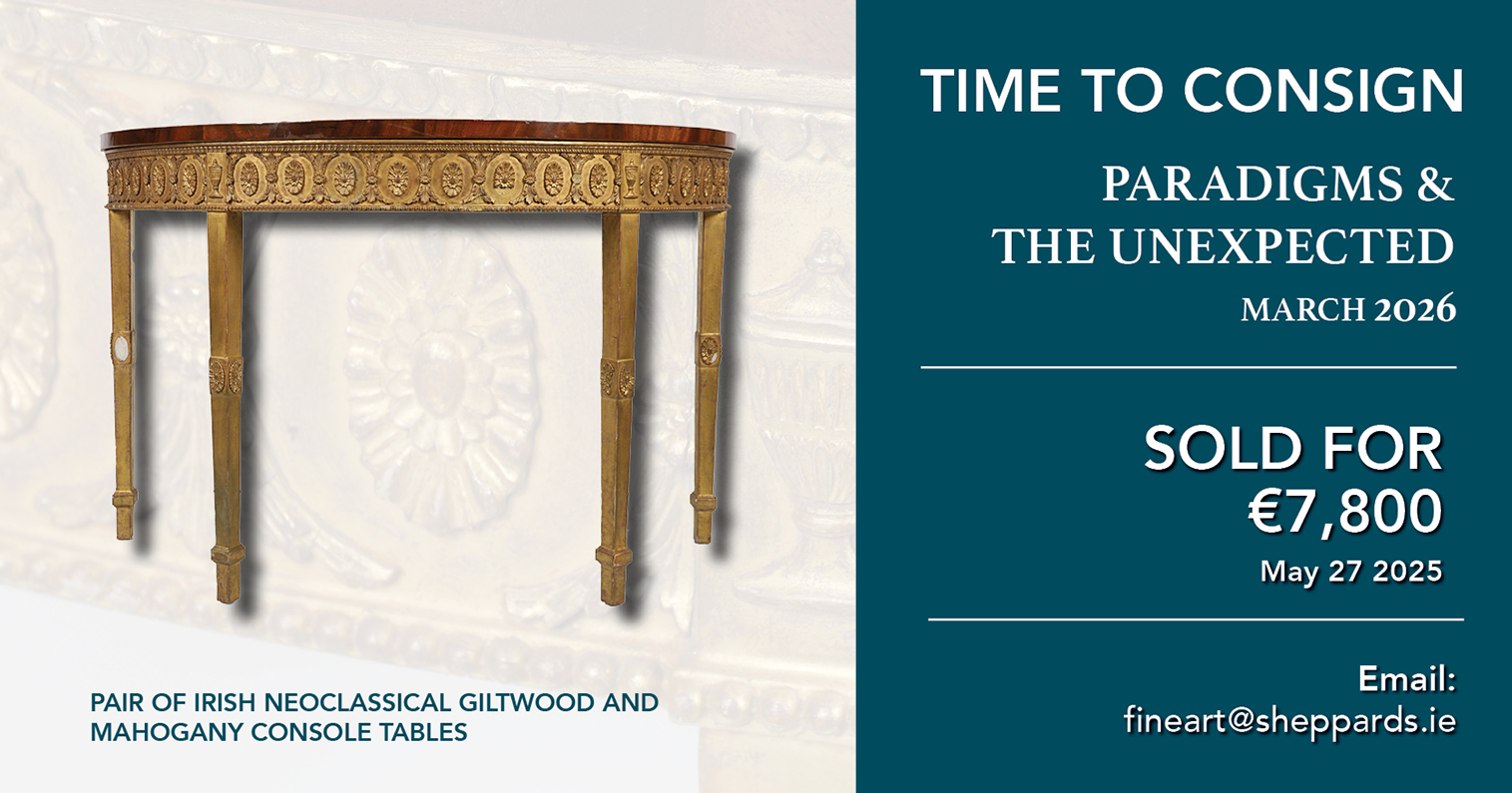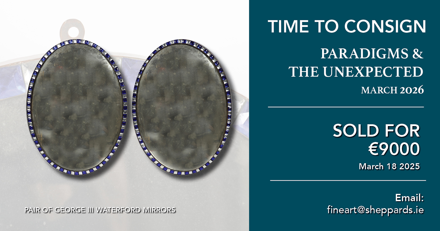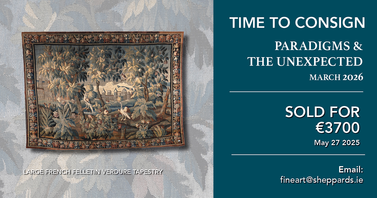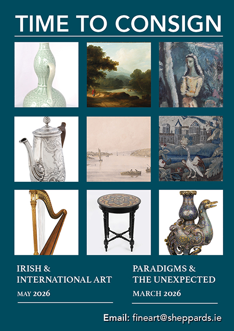 ENTRIES NOW INVITED:Clocks, Fine Wines, Important Watches, Irish Furniture, Irish Silver, Jewellery, Paintings & Prints, Militaria, Porcelain, Sculptures, Musical Instruments, Oriental Art, Objets d’Art.