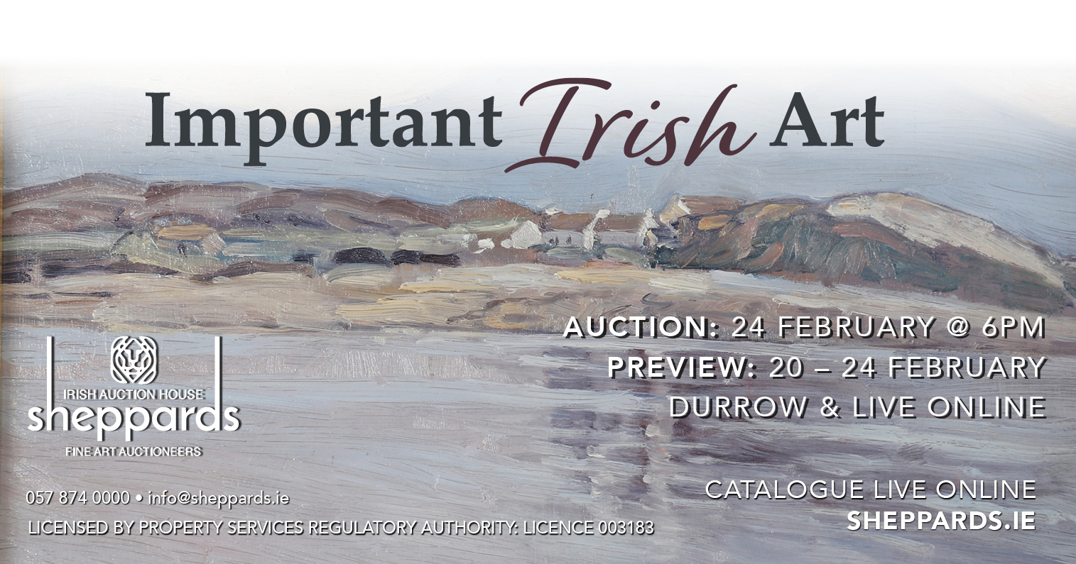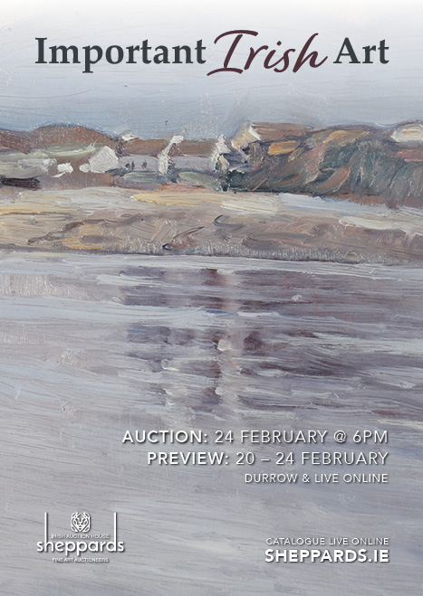 This sale features the Lifetime Collection of Gerry Cuddy, an Irish Art Collector from County Antrim, works from the studios of Sonja Landweer and Barrie Cooke, as well as major works of painting & sculpture from private collections and other important clients. Artists already consigned include Grace Henry, George Mullins, William Percy French, Daniel O’Neill, Letitia Marion Hamilton, Jack Butler Yeats, William Conor, Joshua Clarke and Sons, Charles Vincent Lamb, James Humbert Craig, Rose Maynard Barton, Mildred Anne Butler, John Bellany, Basil Blackshaw, Rory Breslin, John Behan and many more.