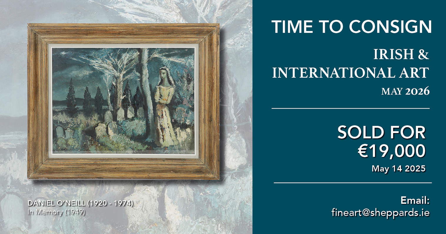 This sale features the Lifetime Collection of Gerry Cuddy, an Irish Art Collector from County Antrim, as well as major works of painting & sculpture from private collections and other important clients. Artists already consigned include Grace Henry, William Percy French, Daniel O’Neill, Letitia Marion Hamilton, Jack Butler Yeats, James Humbert Craig, Mildred Anne Butler, John Bellany, Basil Blackshaw, Rory Breslin and many more.