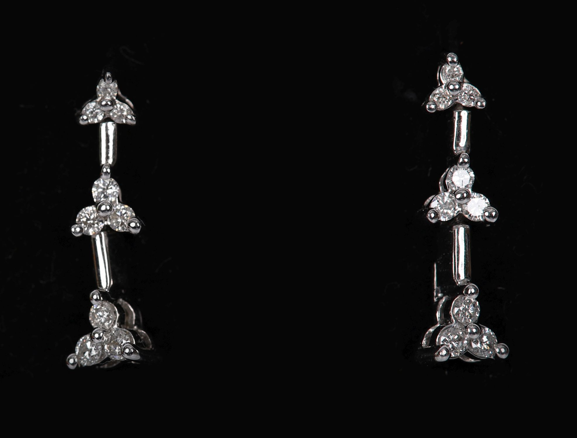 A pair of 14 carat white gold earrings, each set with graduated round brilliant-cut diamonds totalling approx. 1.00 carat.