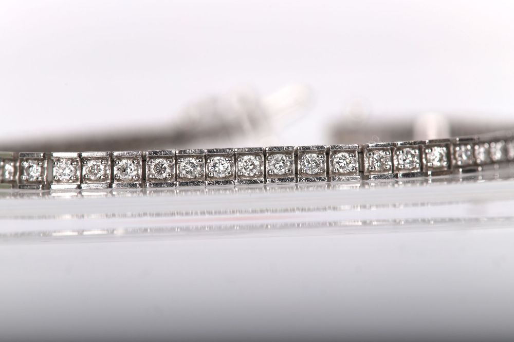Lot 1412 14 CARAT WHITE GOLD DIAMOND TENNIS BRACELET, 2 CARATS TOTAL