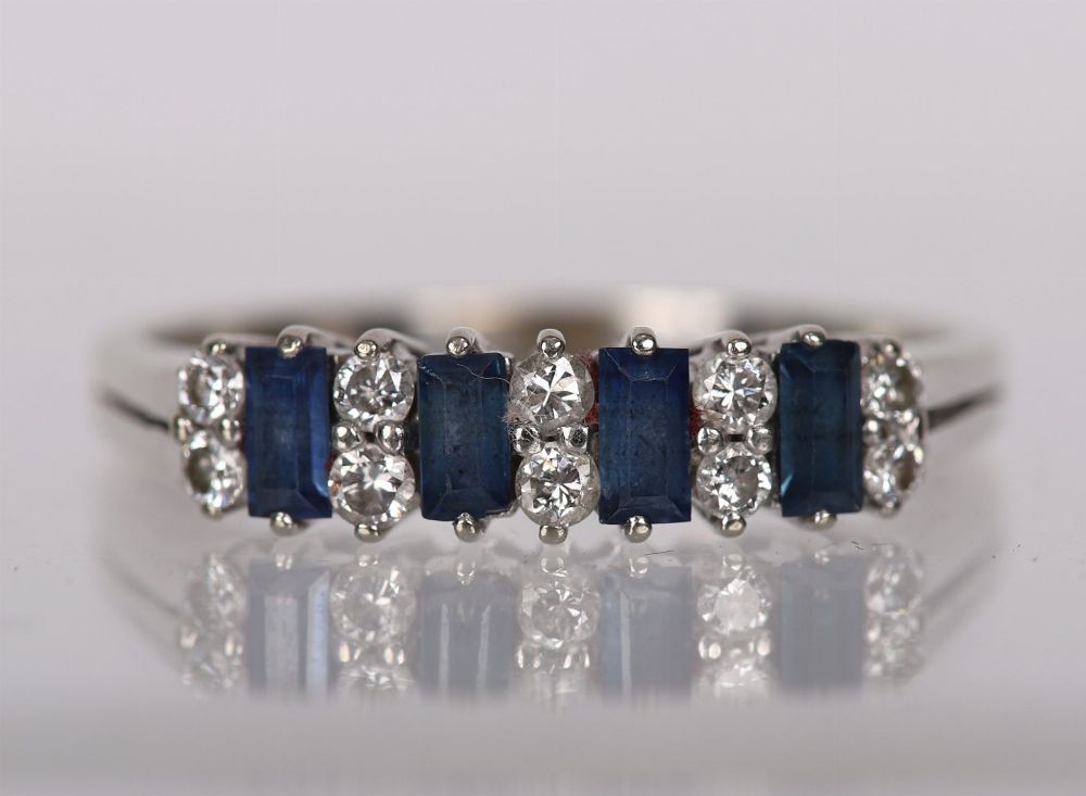 Lot 1383 14 CARAT WHITE GOLD, SAPPHIRE, AND DIAMOND RING