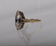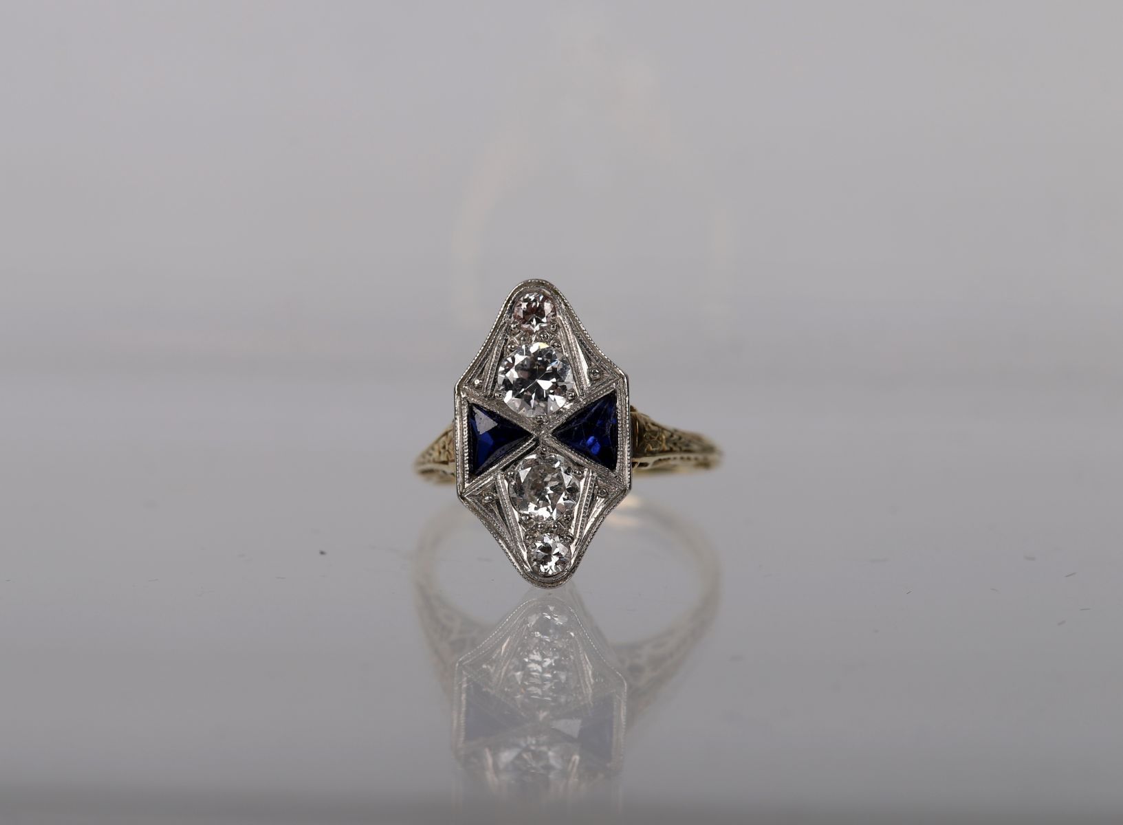 Lot 648 14 CT. GOLD SAPPHIRE AND DIAMOND RING