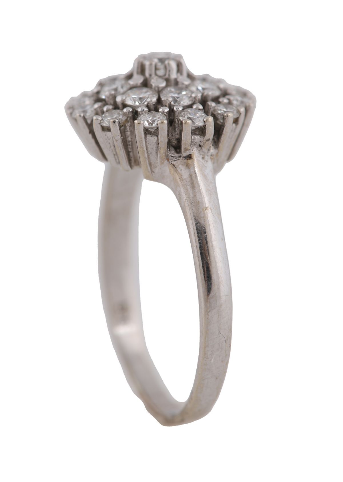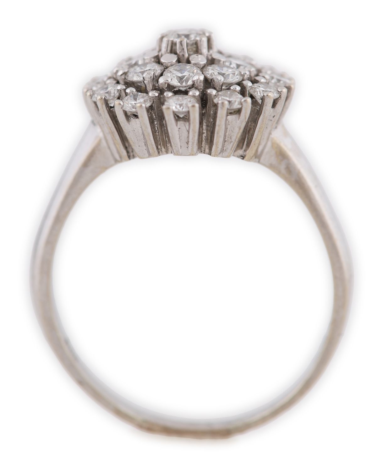 Lot 699 14CT WHITE GOLD DIAMOND CLUSTER RING