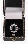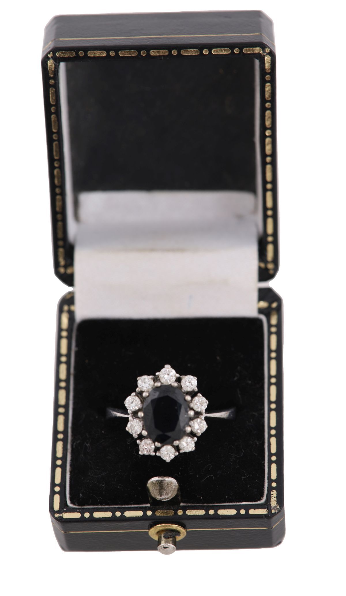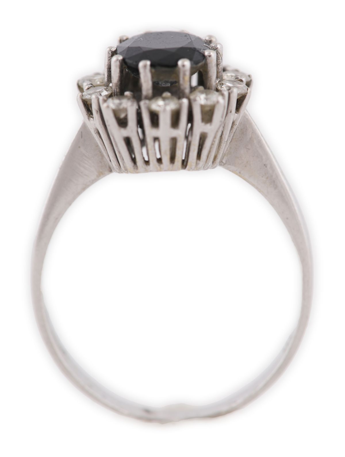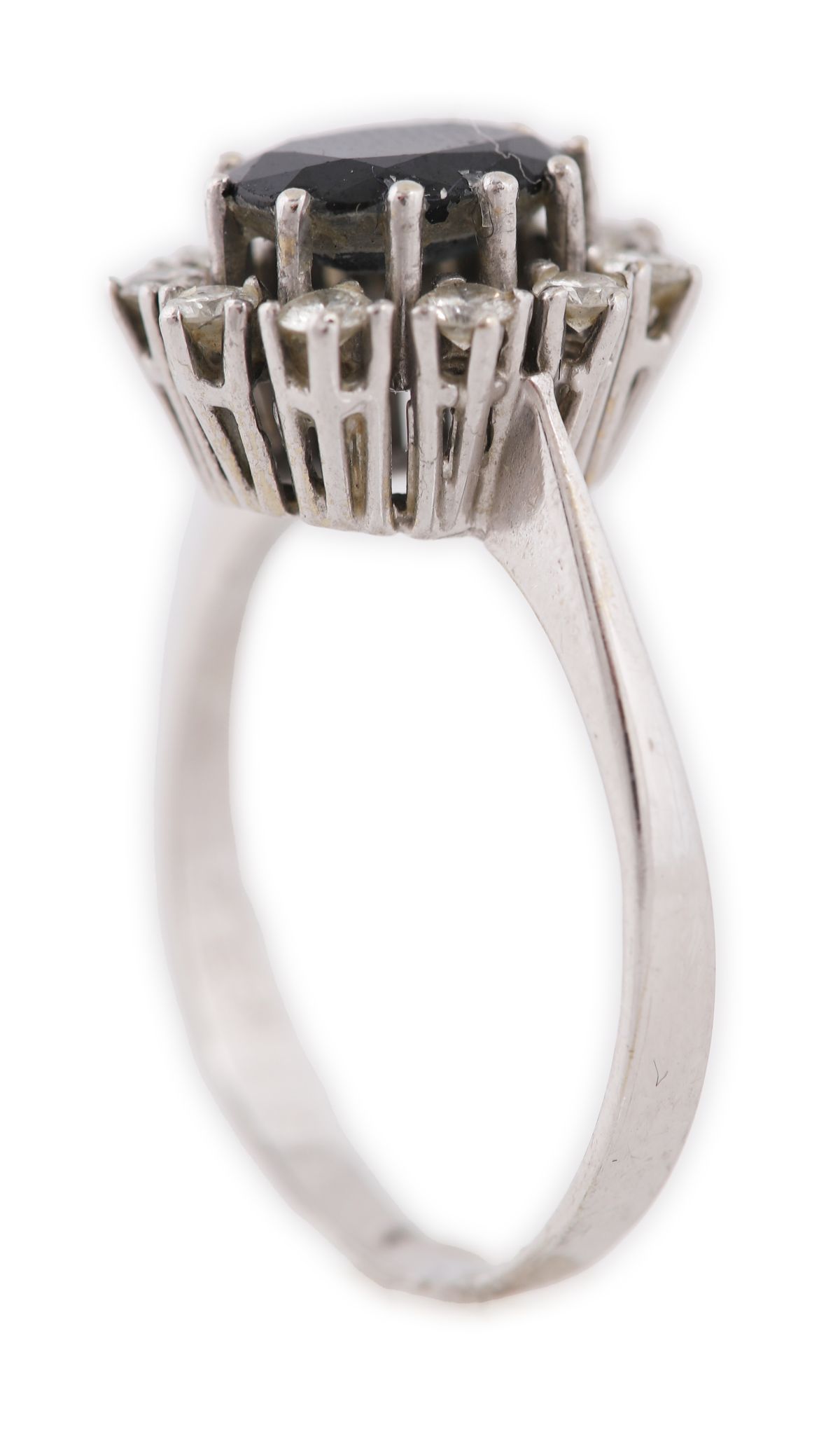 Lot 671 14CT WHITE GOLD SAPPHIRE AND DIAMOND CLUSTER RING
