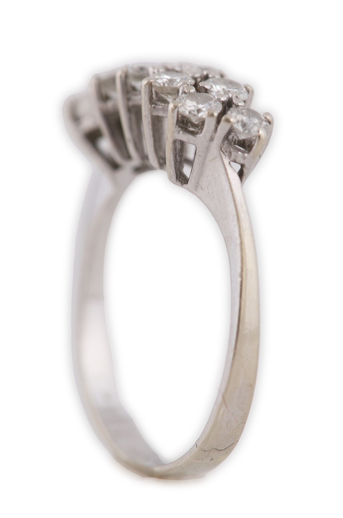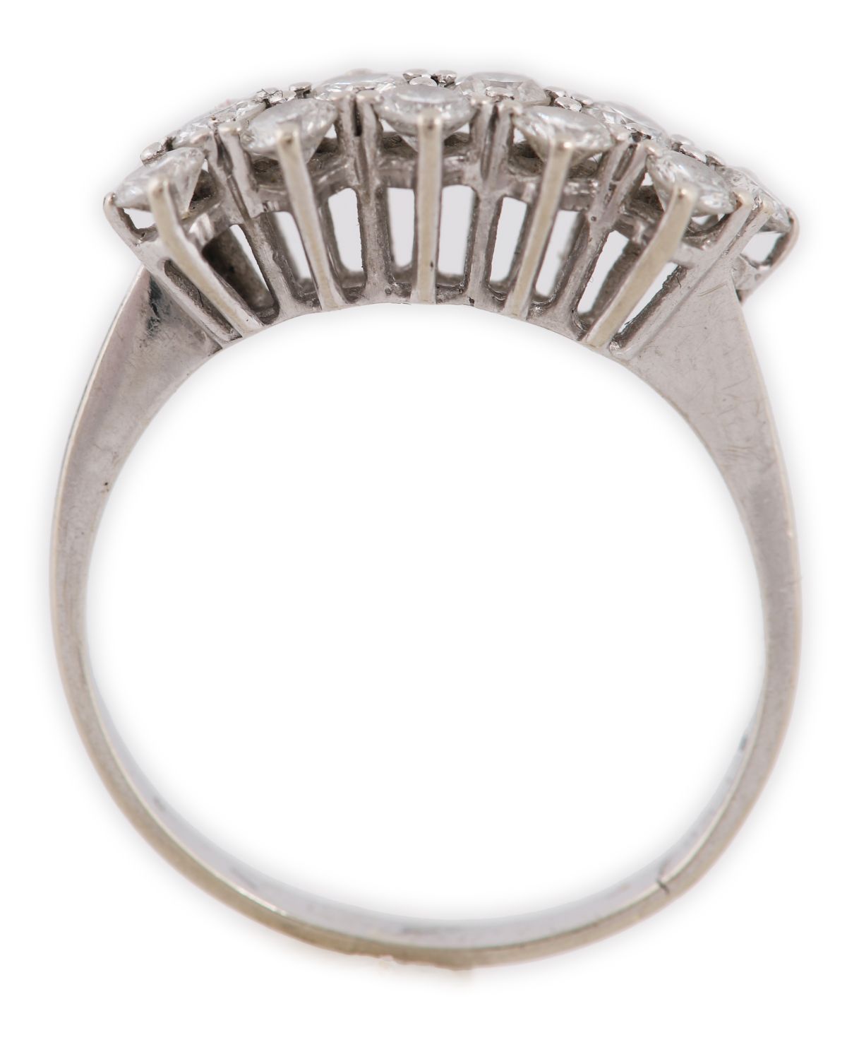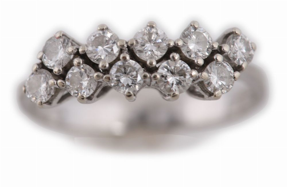 A 14ct white gold diamond ring set with ten round brilliant-cut diamonds across the band.