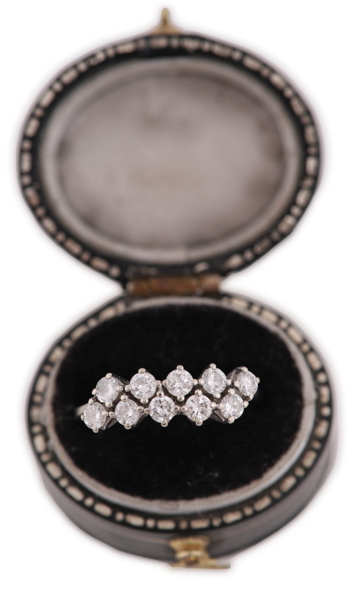 Lot 711 14CT WHITE GOLD TEN-STONE DIAMOND RING