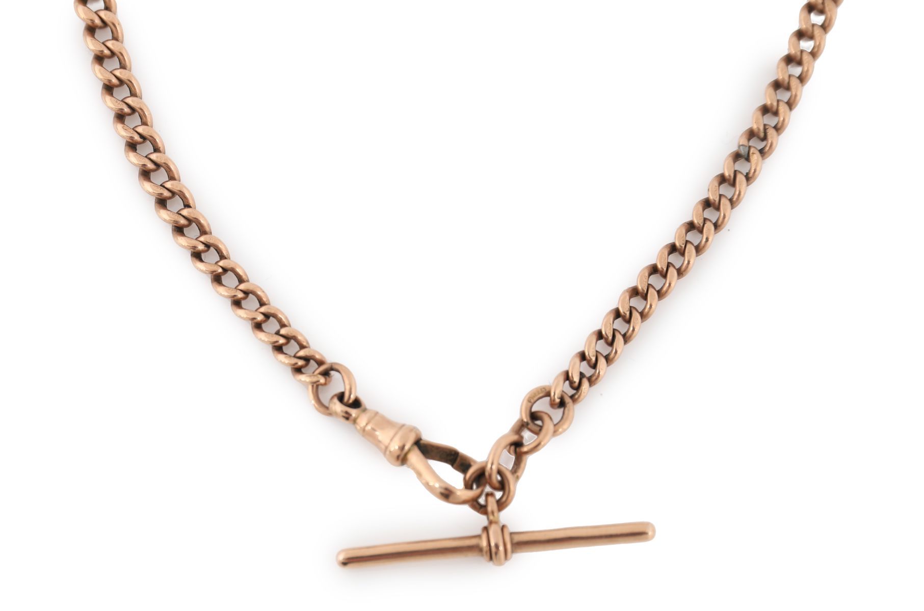 Lot 725 15 CT. GOLD ALBERT WATCH CHAIN WITH T-BAR