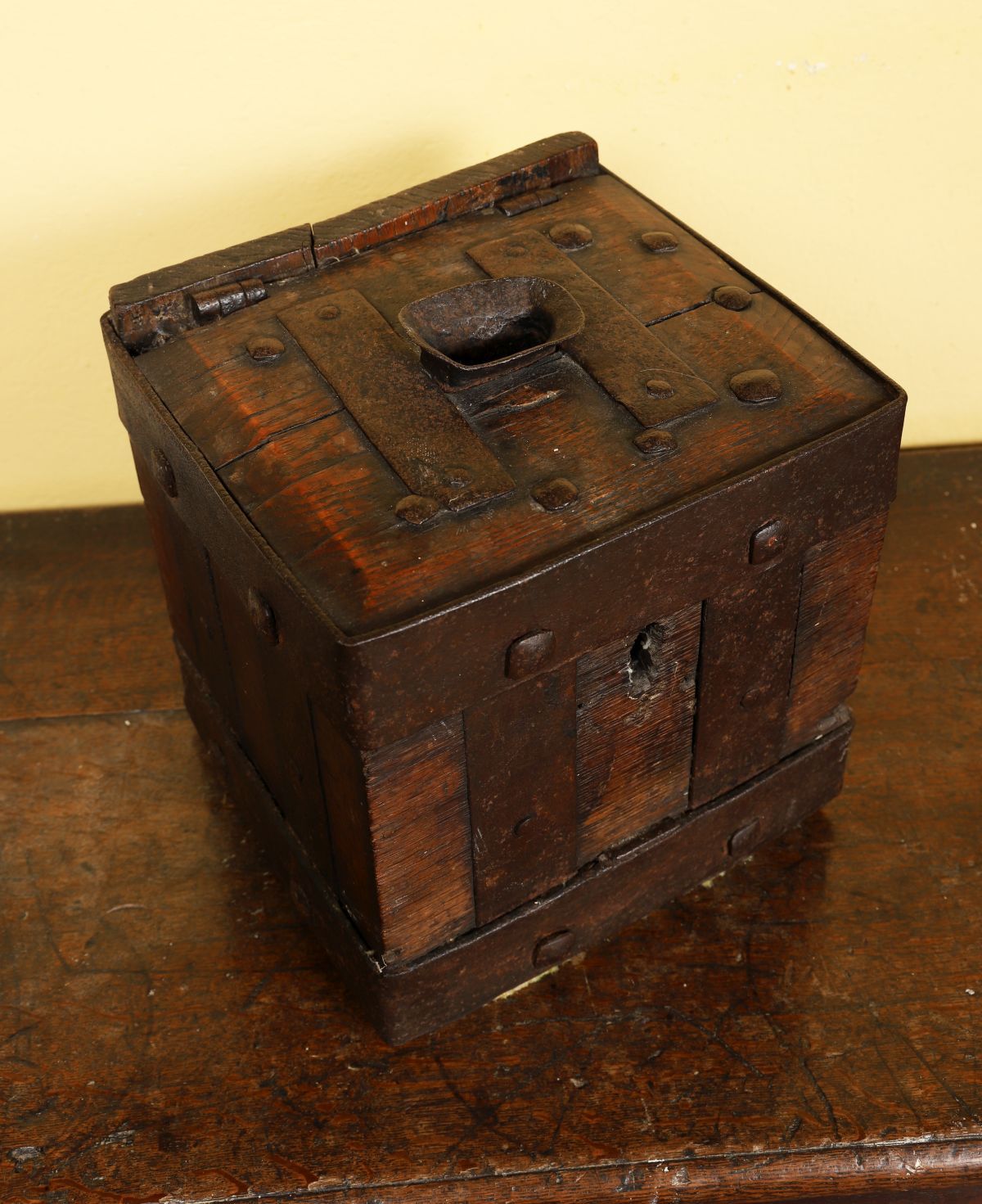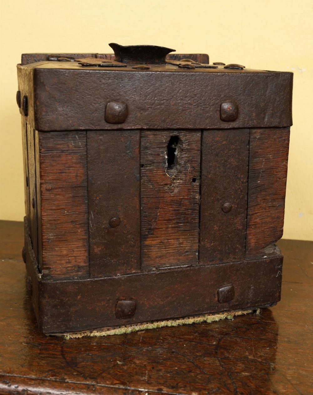 Lot 431 16TH-17TH-CENTURY IRON-BOUND OAK RENT BOX