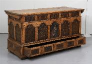 Lot 21 17TH-CENTURY PAINTED AND PARCEL-GILT COFFER