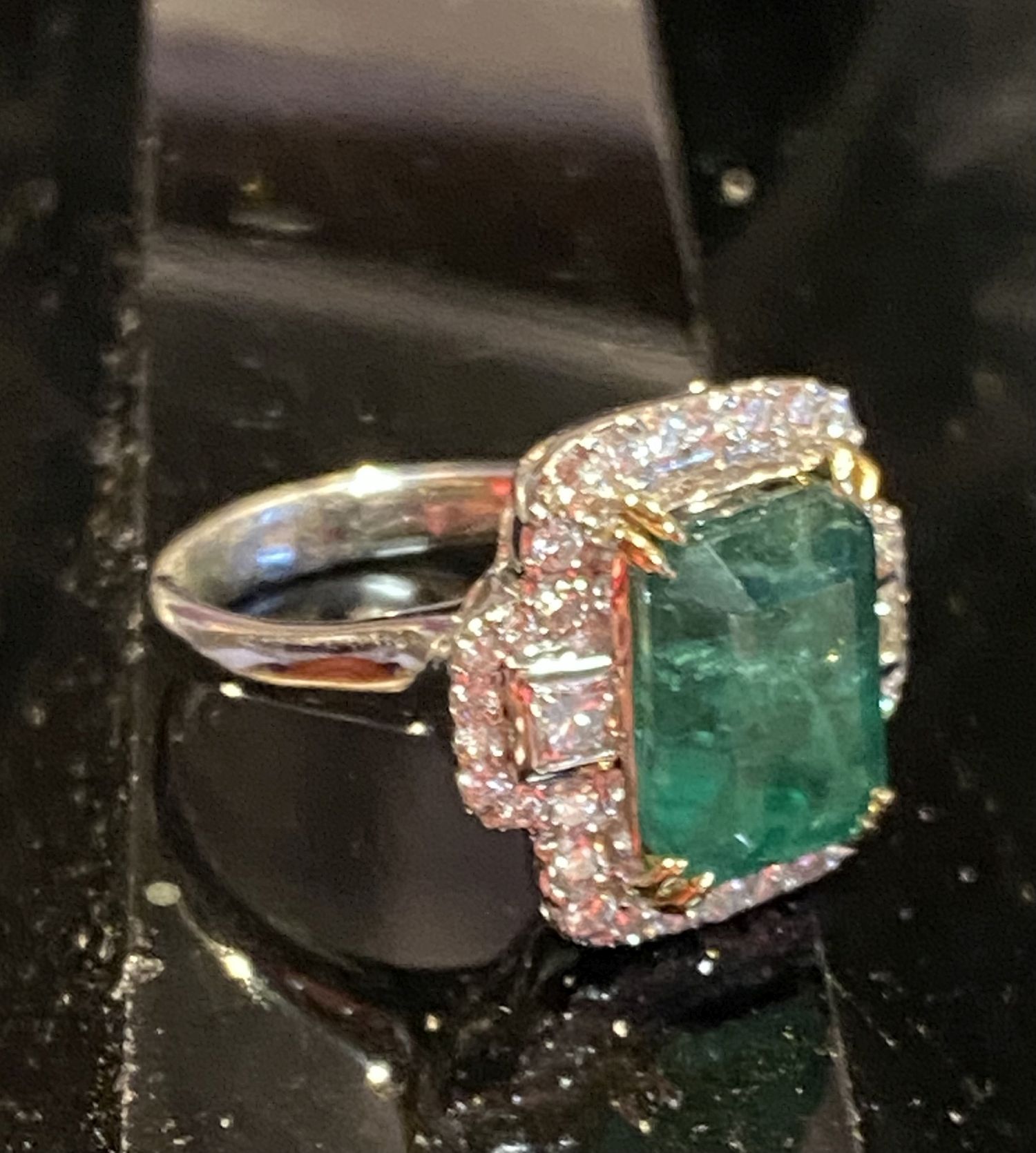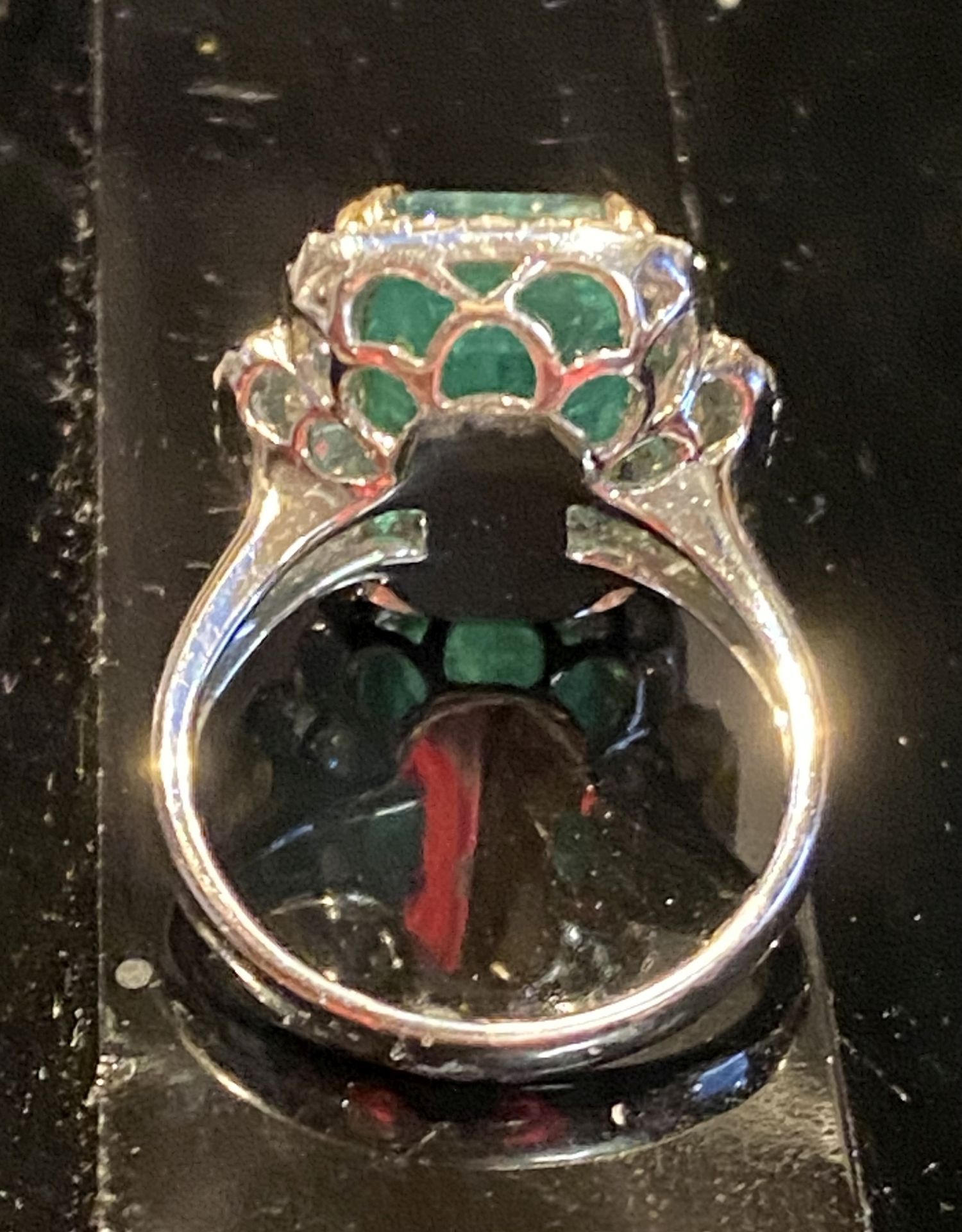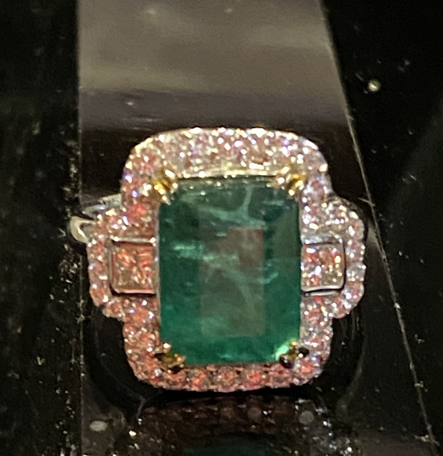 Emerald weight: 7.48 ct.; diamond weight: 1.65 ct.