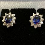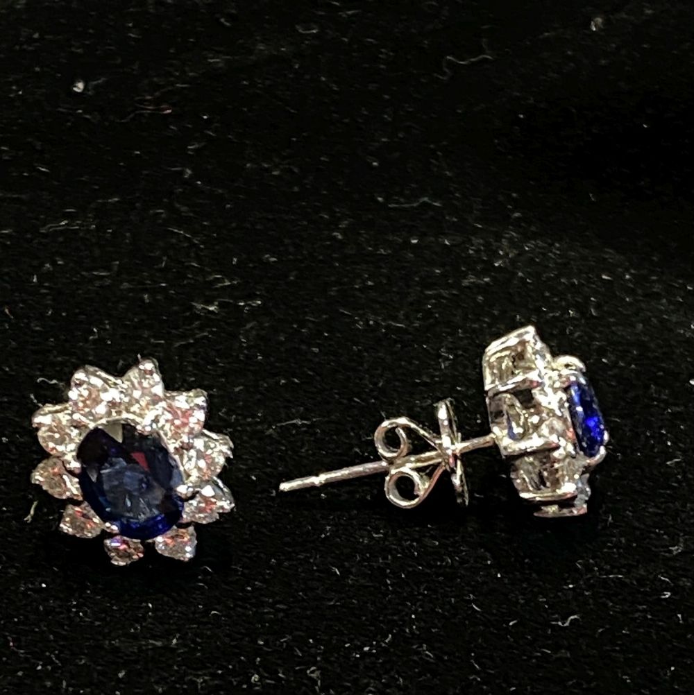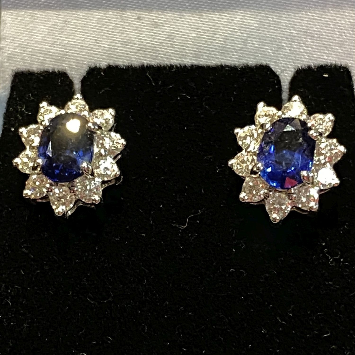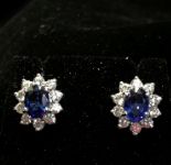 Lot 1402 18 CT. WHITE GOLD NATURAL CEYLON SAPPHIRE AND DIAMOND CLUSTER EARRINGS