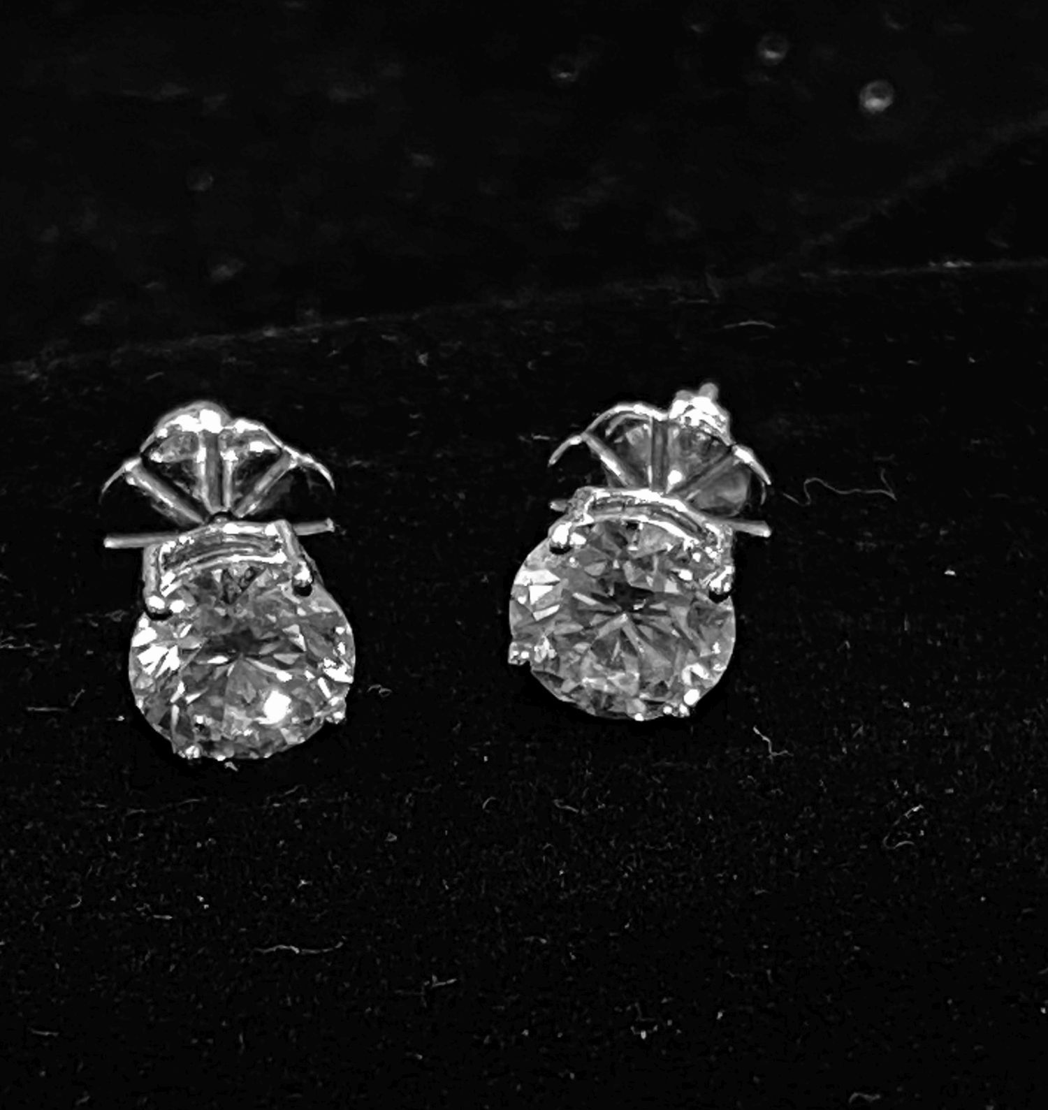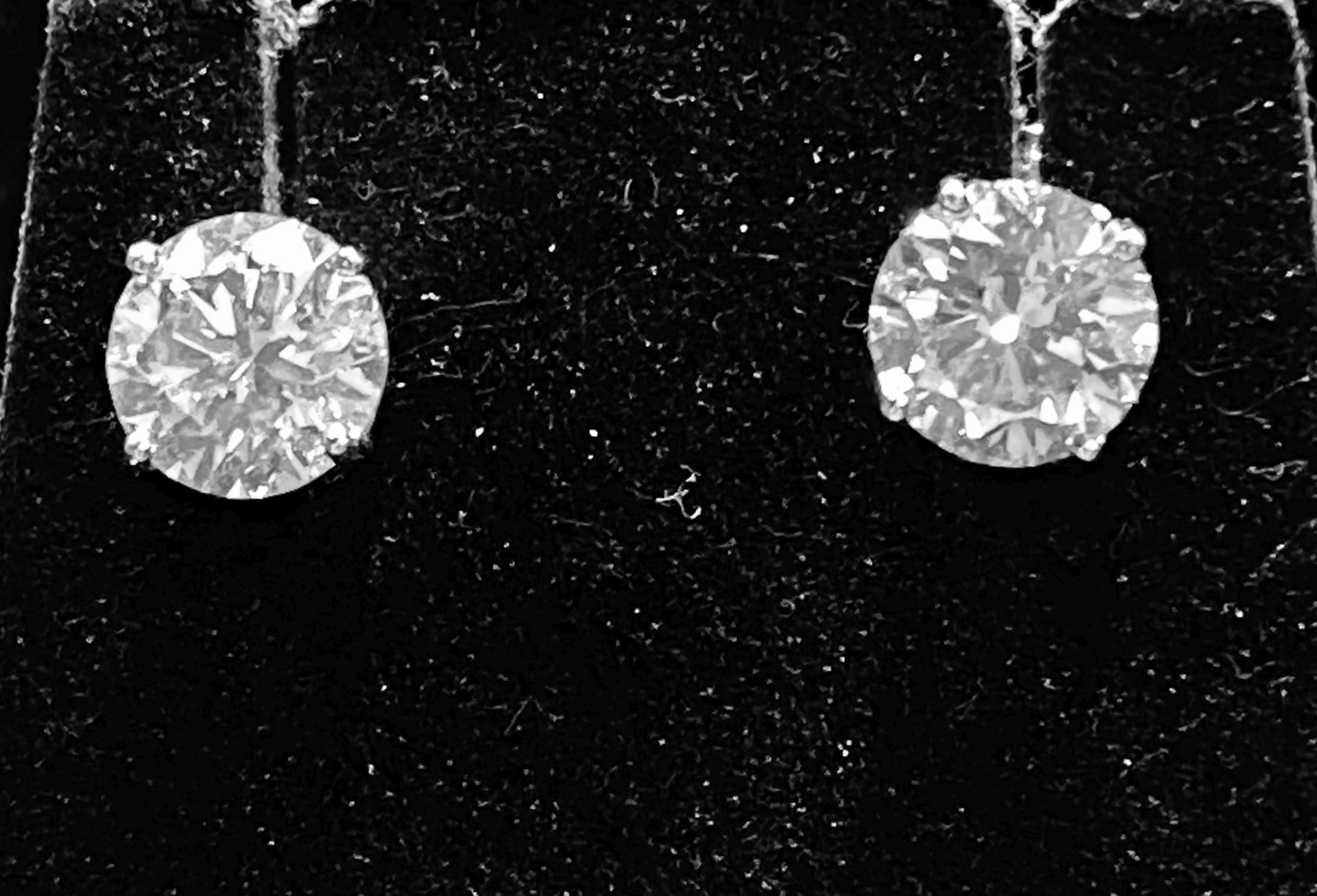 Lot 1418 18 CT. WHITE GOLD ROUND BRILLIANT CUT SOLITAIRE DIAMOND STUDS
