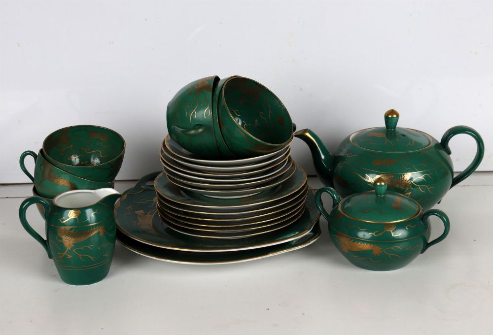 Lot 1227 18 PIECE CHINA GREEN GLAZED TEA SET