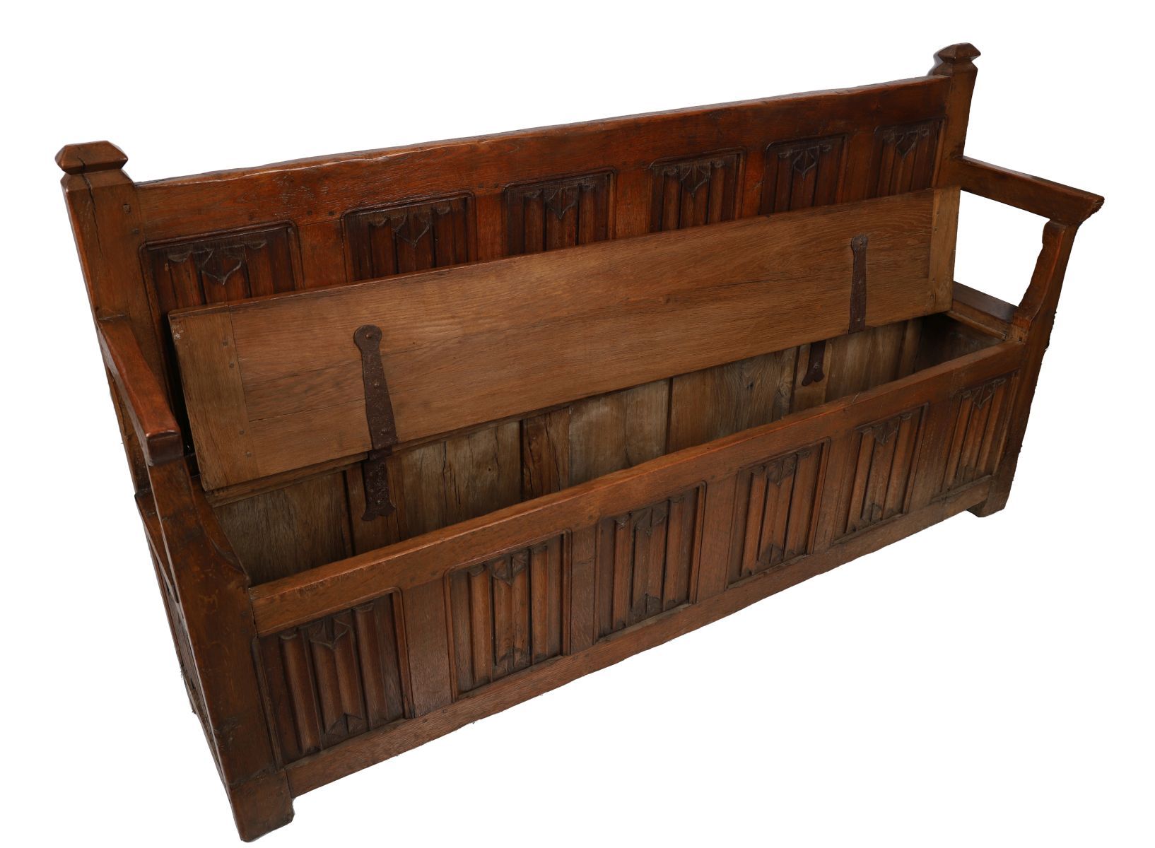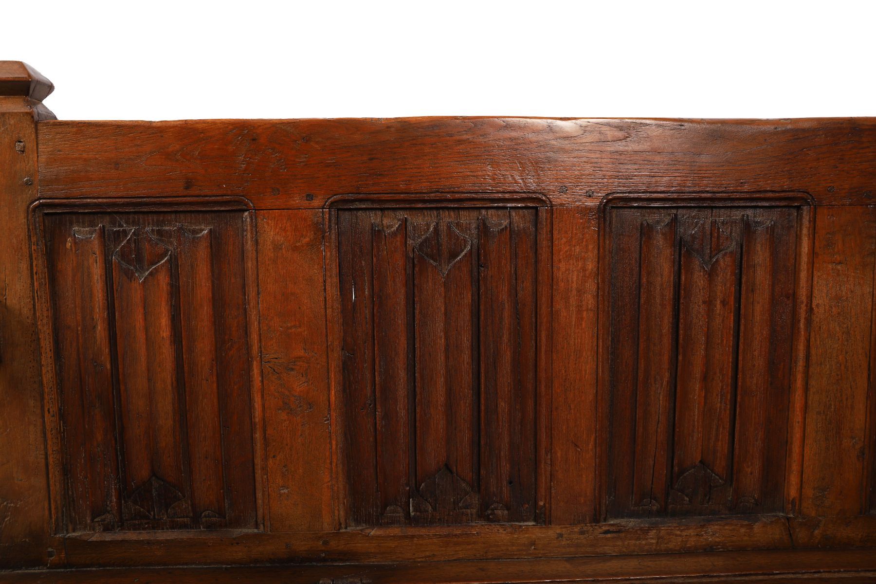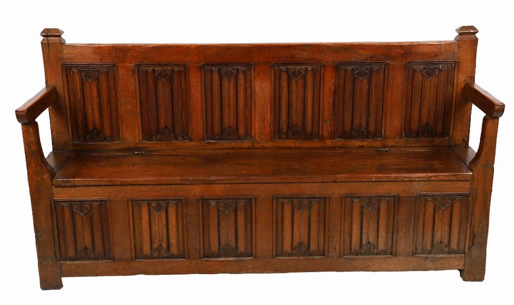 Lot 1138 18TH-CENTURY CARVED LINENFOLD PANELLED HALL BENCH