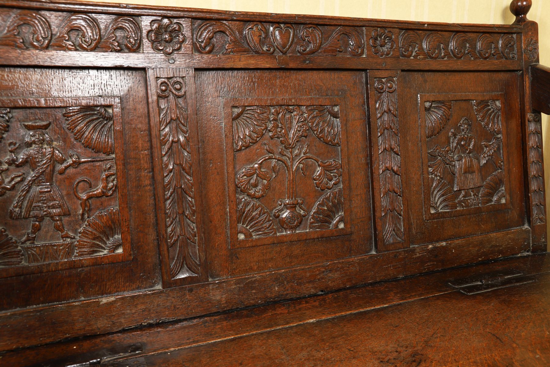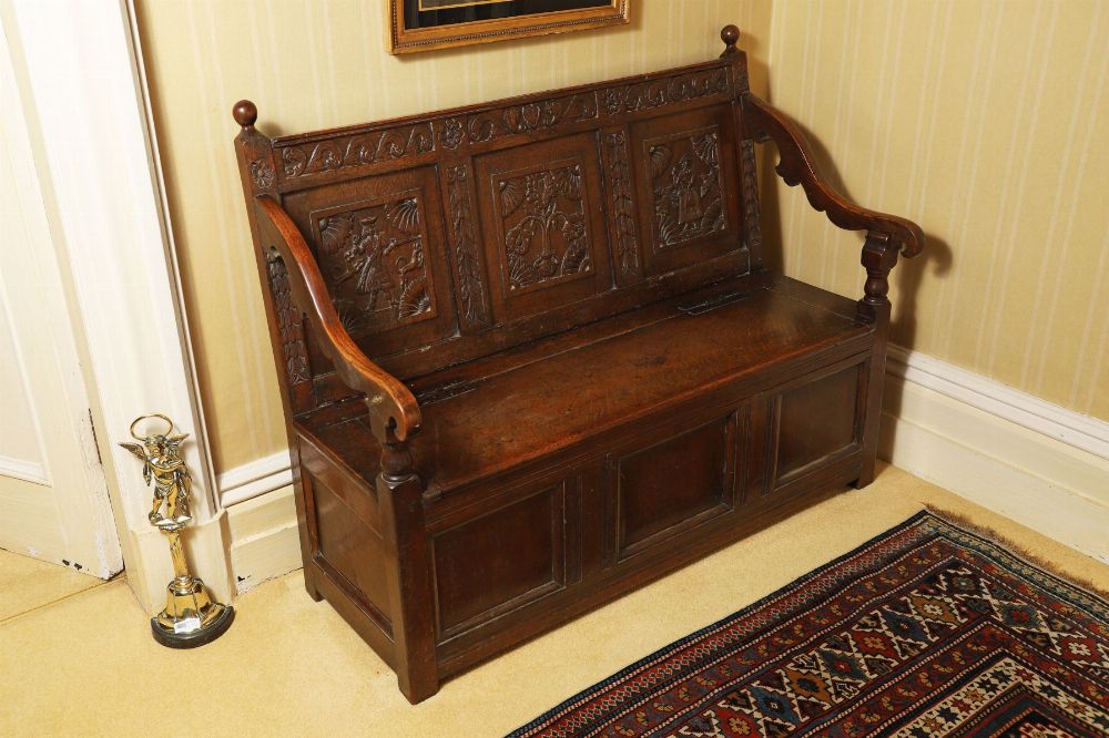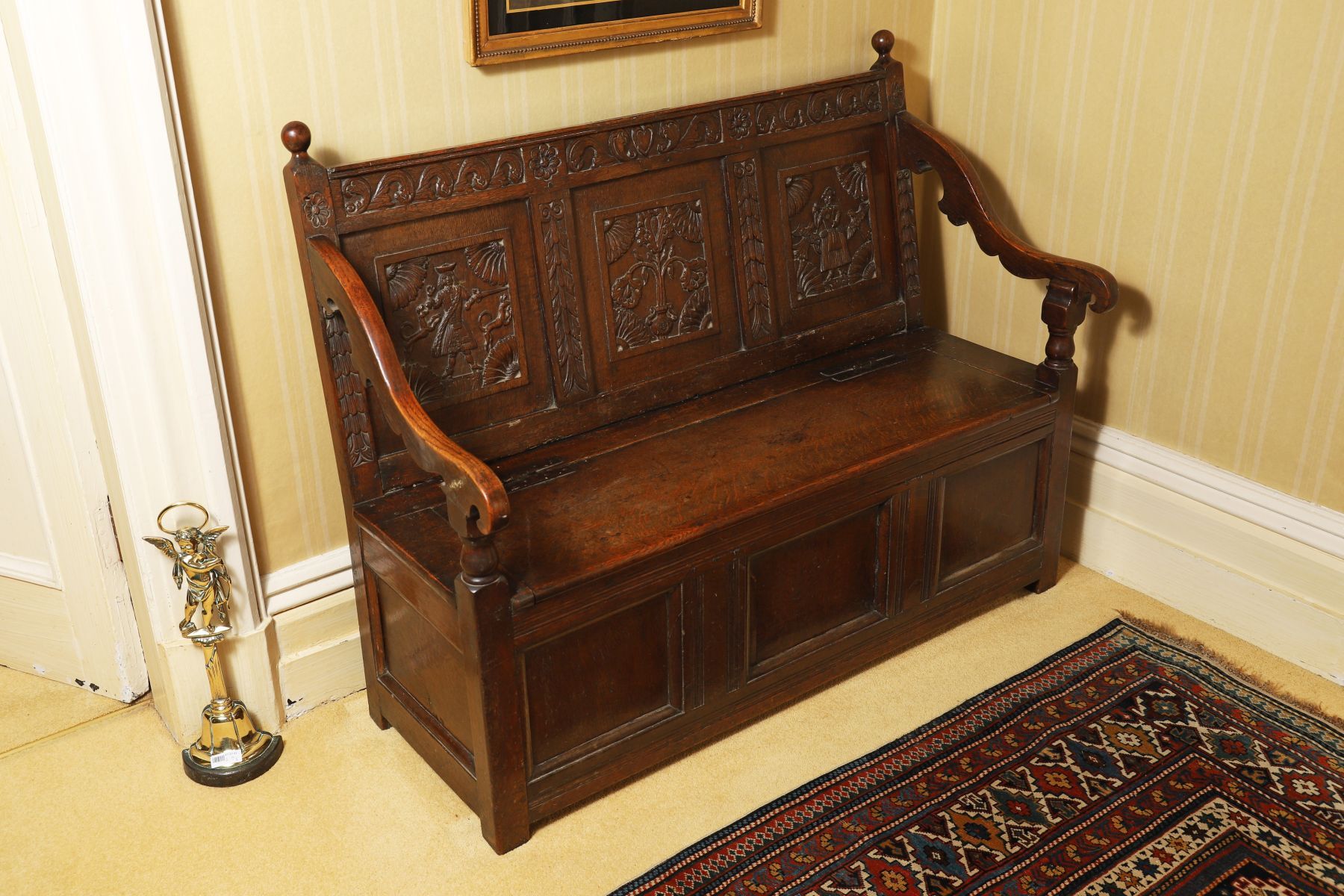 Lot 121 18TH-CENTURY CARVED OAK HALL BENCH