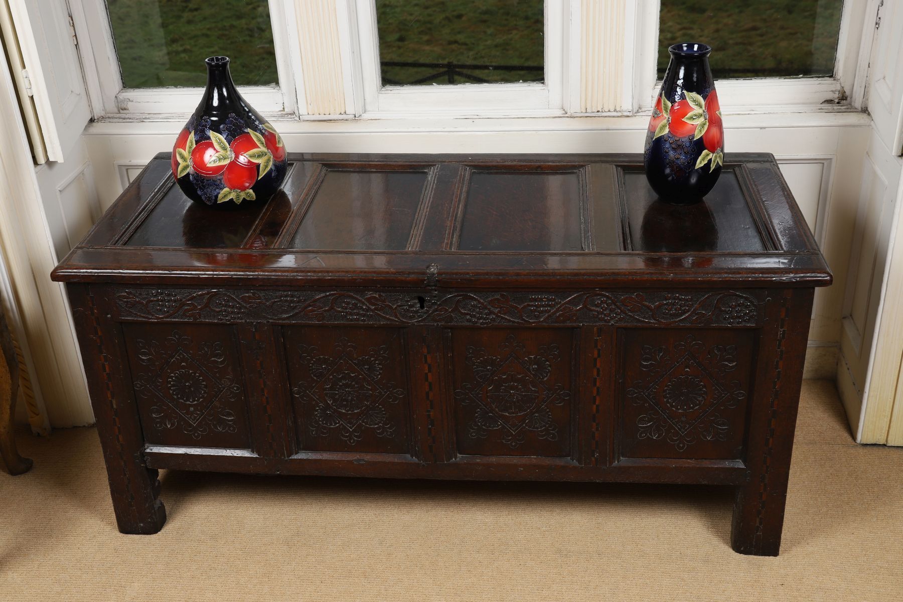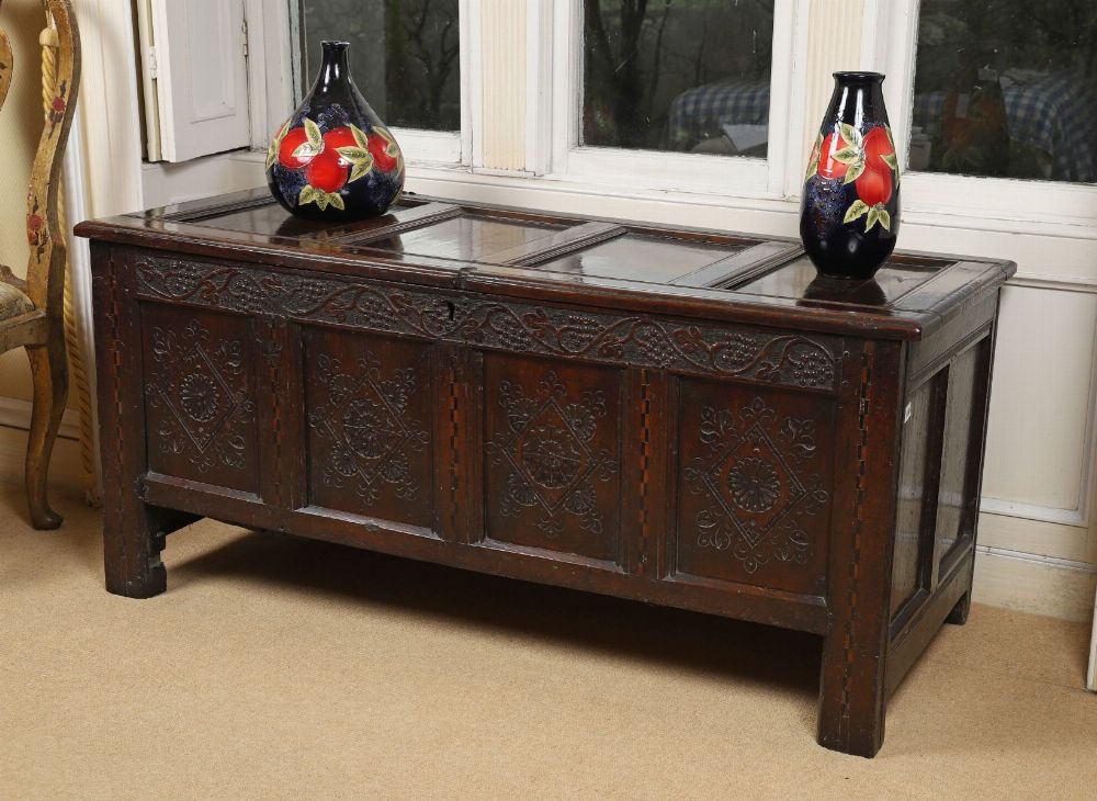 Lot 323 18TH-CENTURY CARVED OAK TRUNK