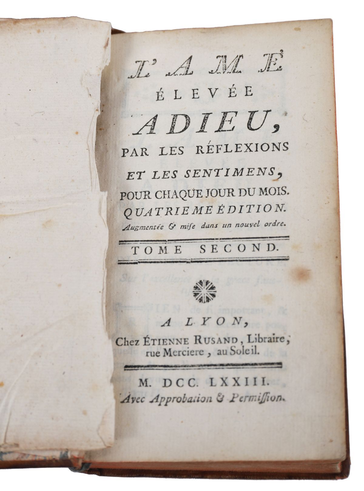 Lot 128 18TH-CENTURY FRENCH DEVOTIONAL WORK — L’ÂME ÉLEVÉE À DIEU — LYON, ÉTIENNE RUSAND, 1773 — TWO VOLUMES