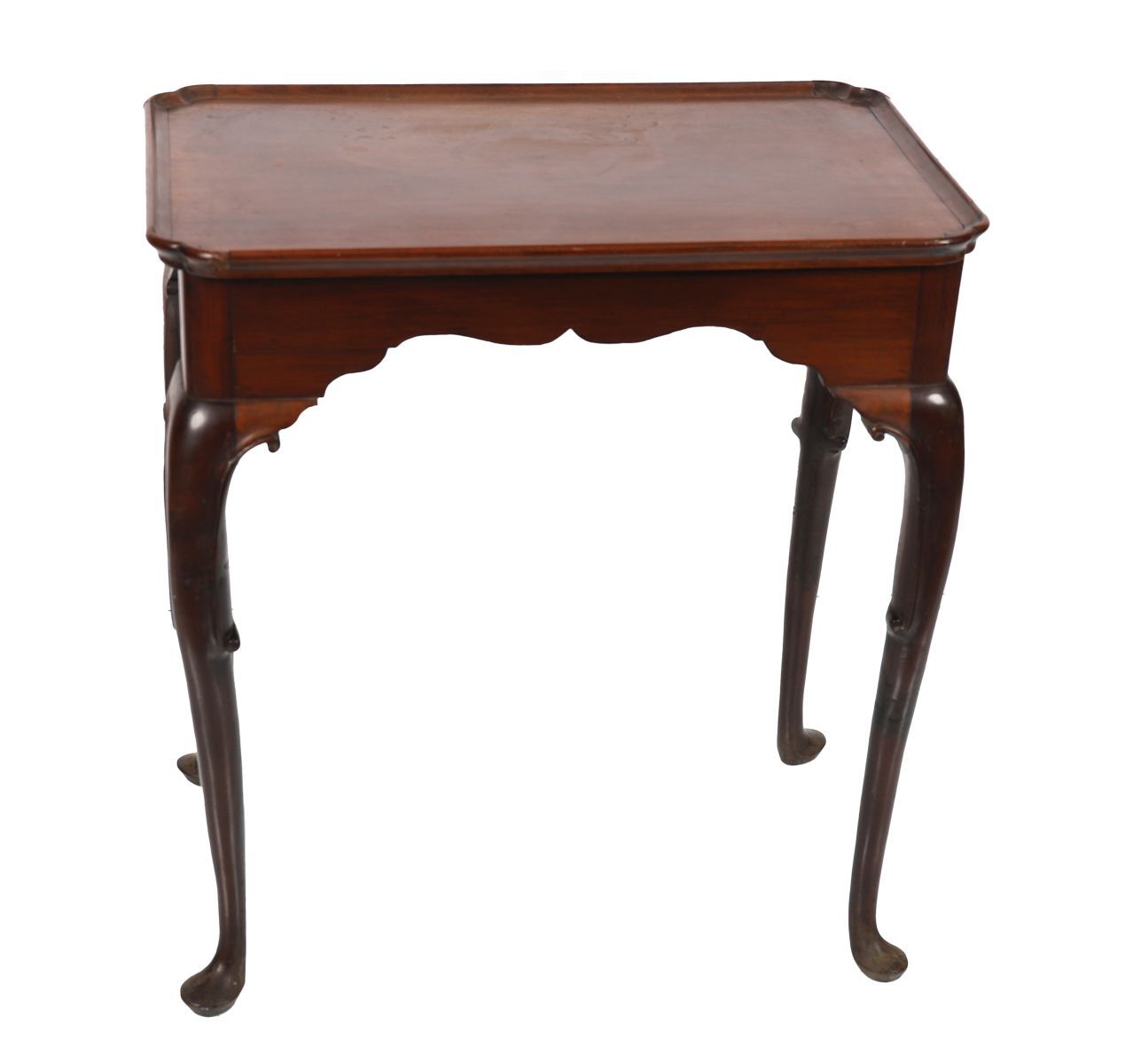 A fine 18th-century Irish mahogany silver table, the shaped dished top with moulded edge above a plain frieze, raised on cabriole legs terminating in pad feet.