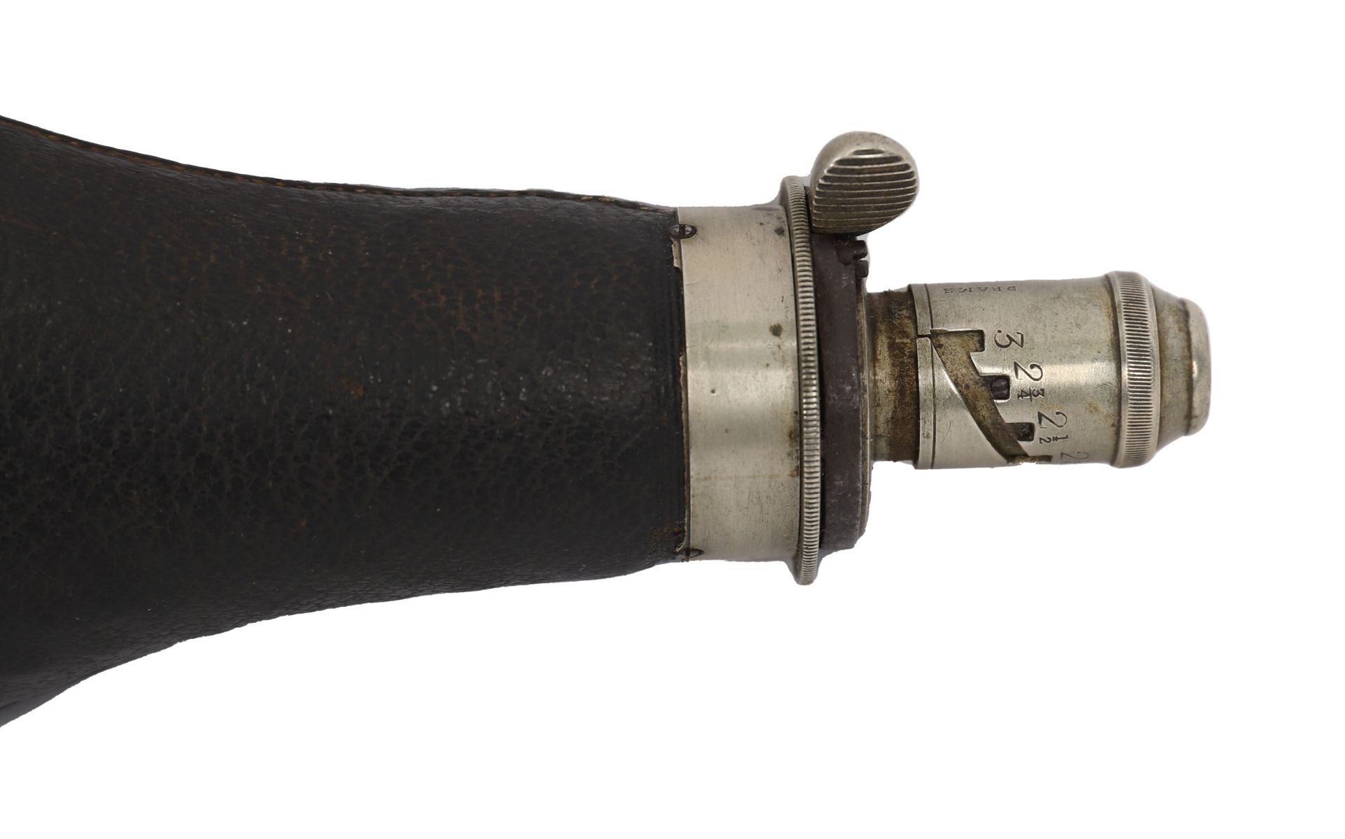 Lot 1052 18TH-CENTURY LEATHER POWDER FLASK