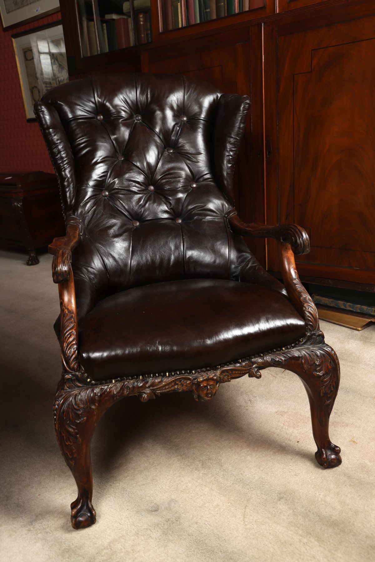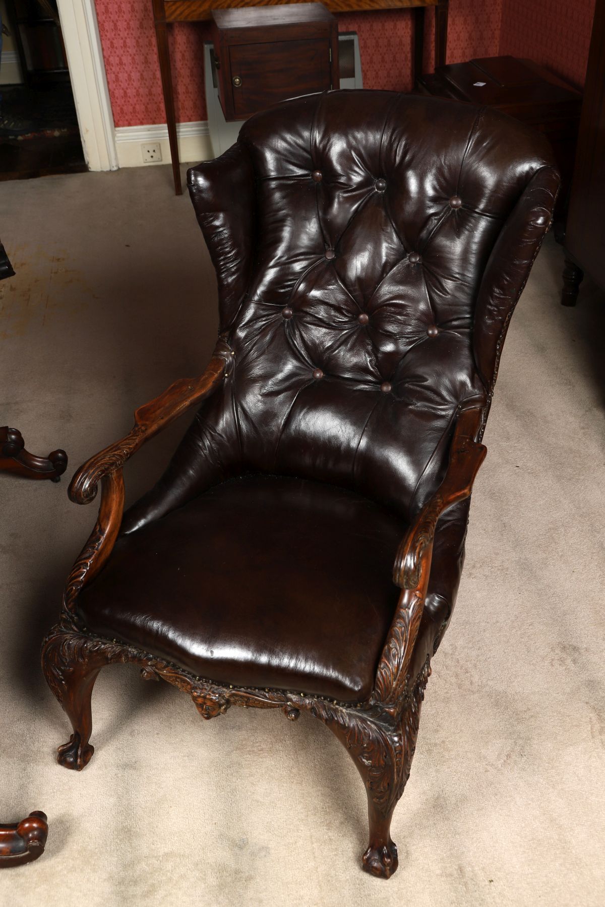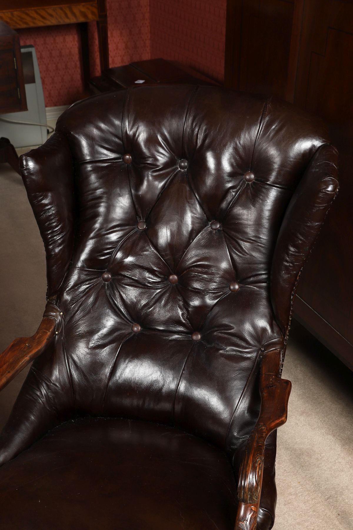 Lot 39 18TH-CENTURY MAHOGANY AND HIDE UPHOLSTERED WINGBACK ARMCHAIR