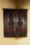 Lot 127 18TH-CENTURY PANELLED OAK WALL-MOUNTED CORNER CABINET