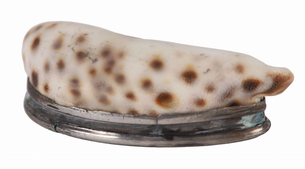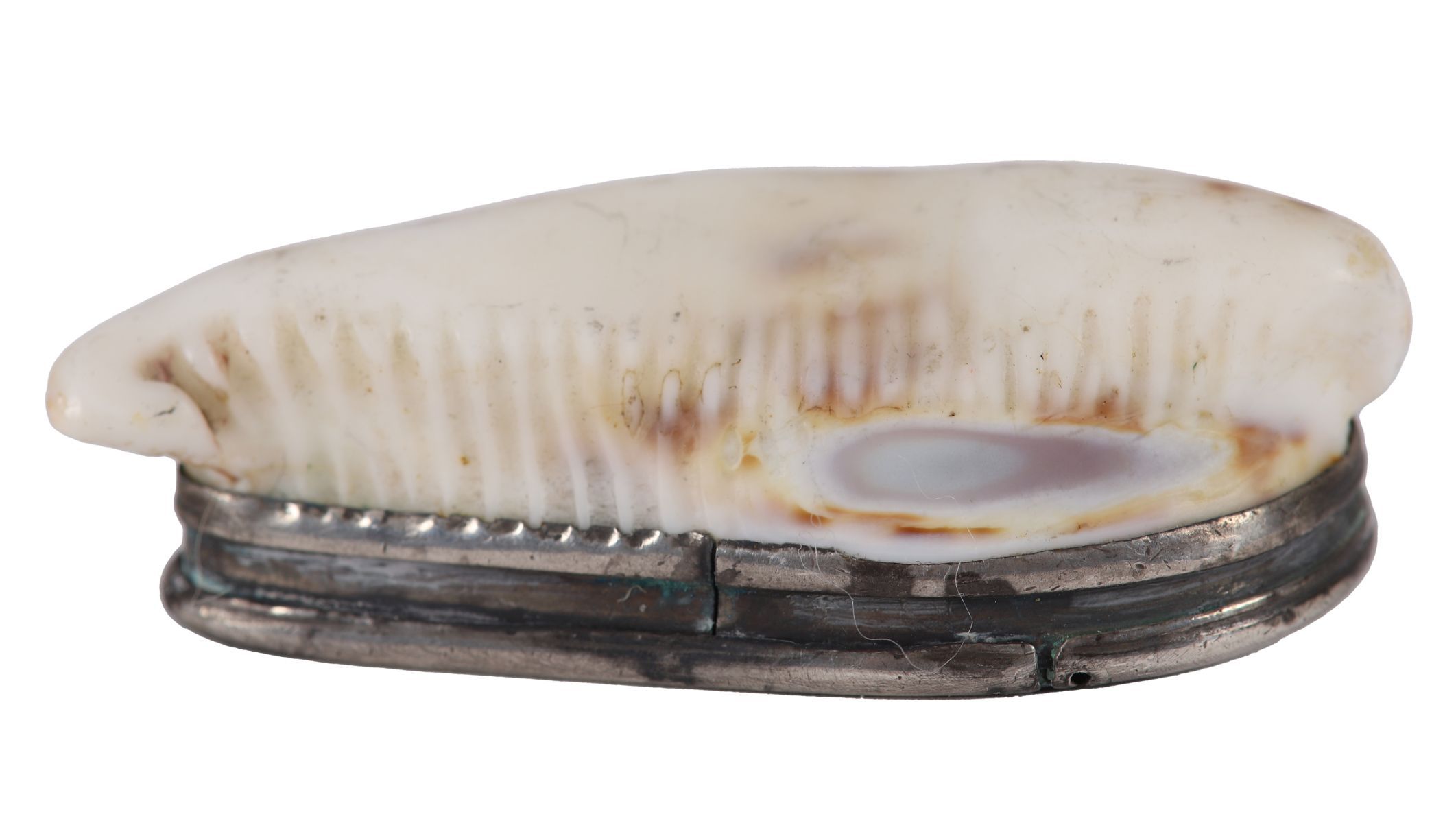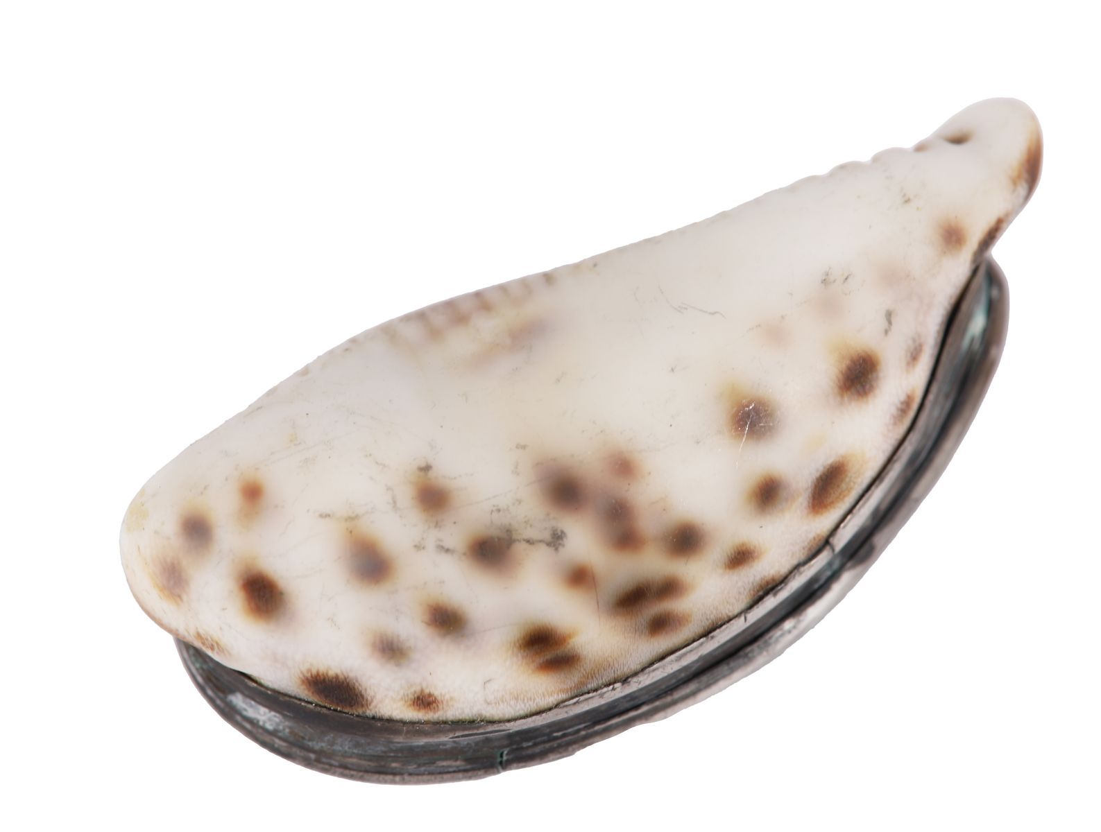 Lot 609 18TH-CENTURY SHELL SNUFF BOX WITH SILVER MOUNT