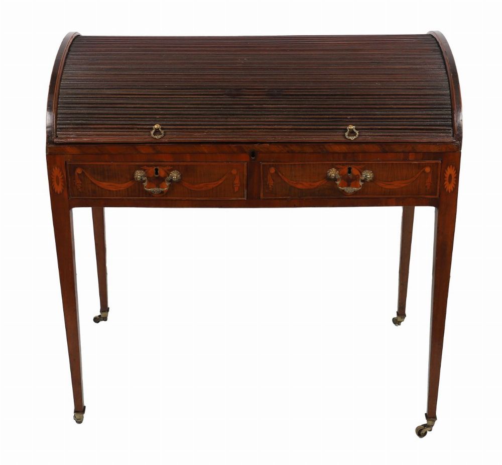 Lot 1246 18TH-CENTURY SHERATON PERIOD MAHOGANY AND MARQUETRY TAMBOUR WRITING DESK