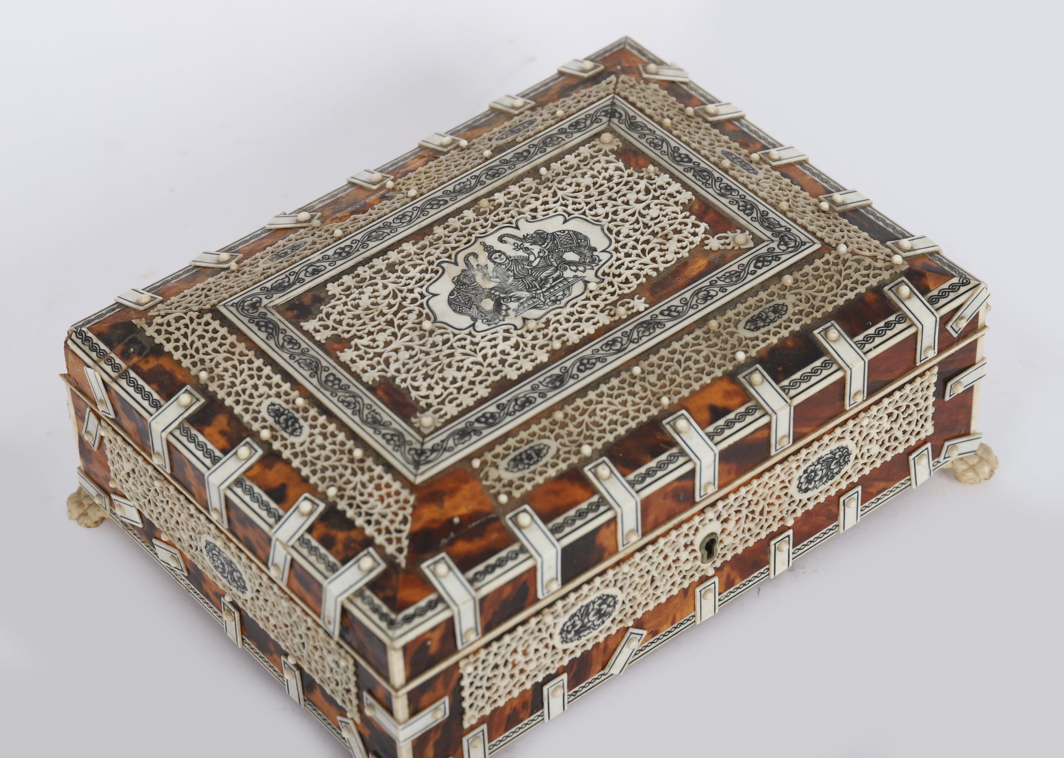 Lot 181 19TH-CENTURY ANGLO-INDIAN VIZAGAPATAM IVORY AND TORTOISESHELL BOX