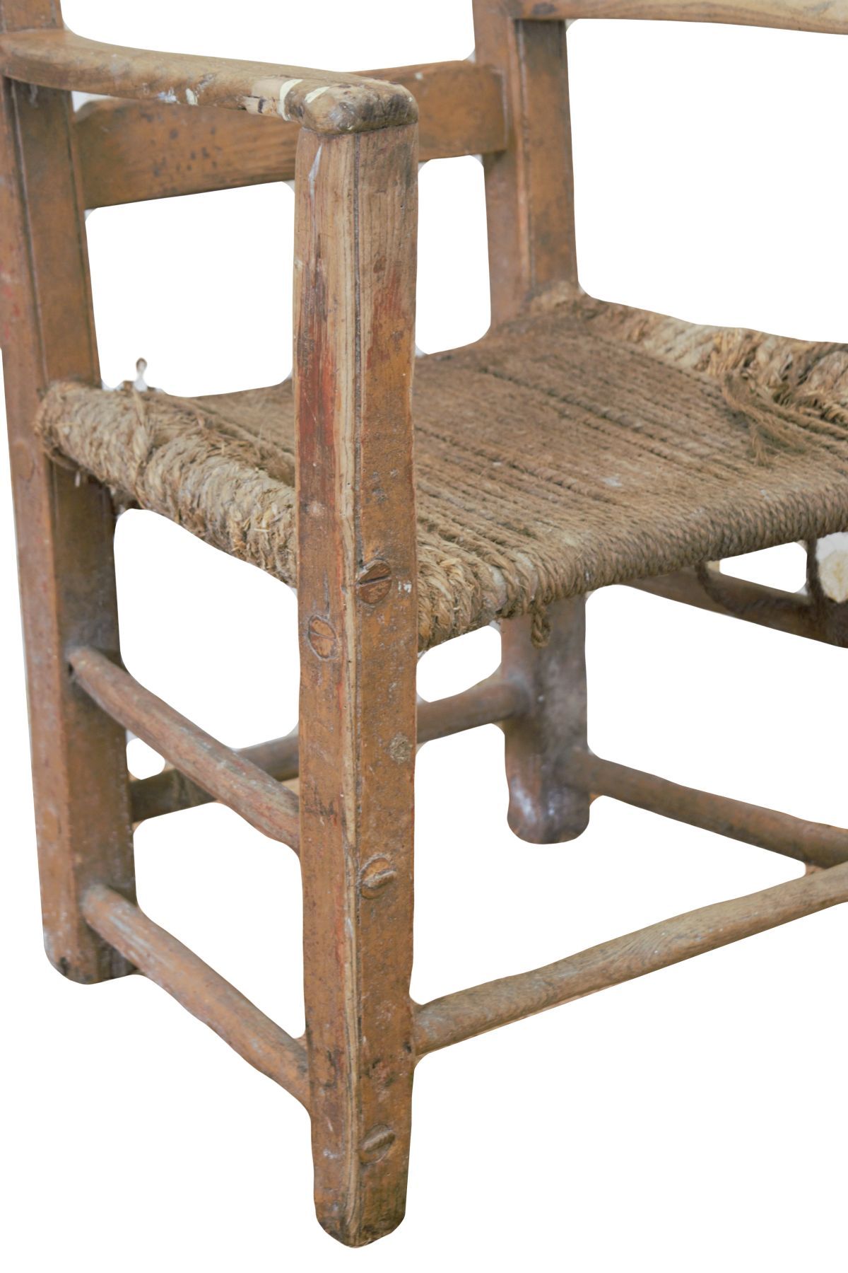 of traditional form, with a straw-bound seat between shaped arms, raised on square legs; a staple in rural Irish kitchens.