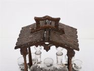 Lot 140 19TH-CENTURY BLACK FOREST OAK TANTALUS WITH DECANTERS AND GLASSES