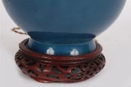 Lot 837 19TH-CENTURY BLUE CERAMIC TABLE LAMP WITH WOODEN BASE