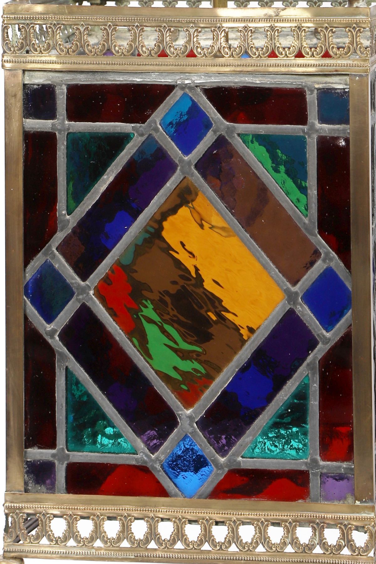 Lot 1217 19TH-CENTURY BRASS AND LEADED GLASS HALL LANTERN