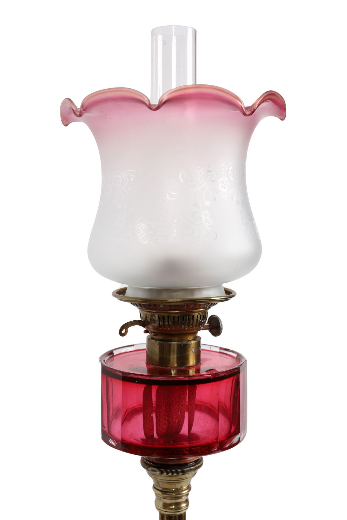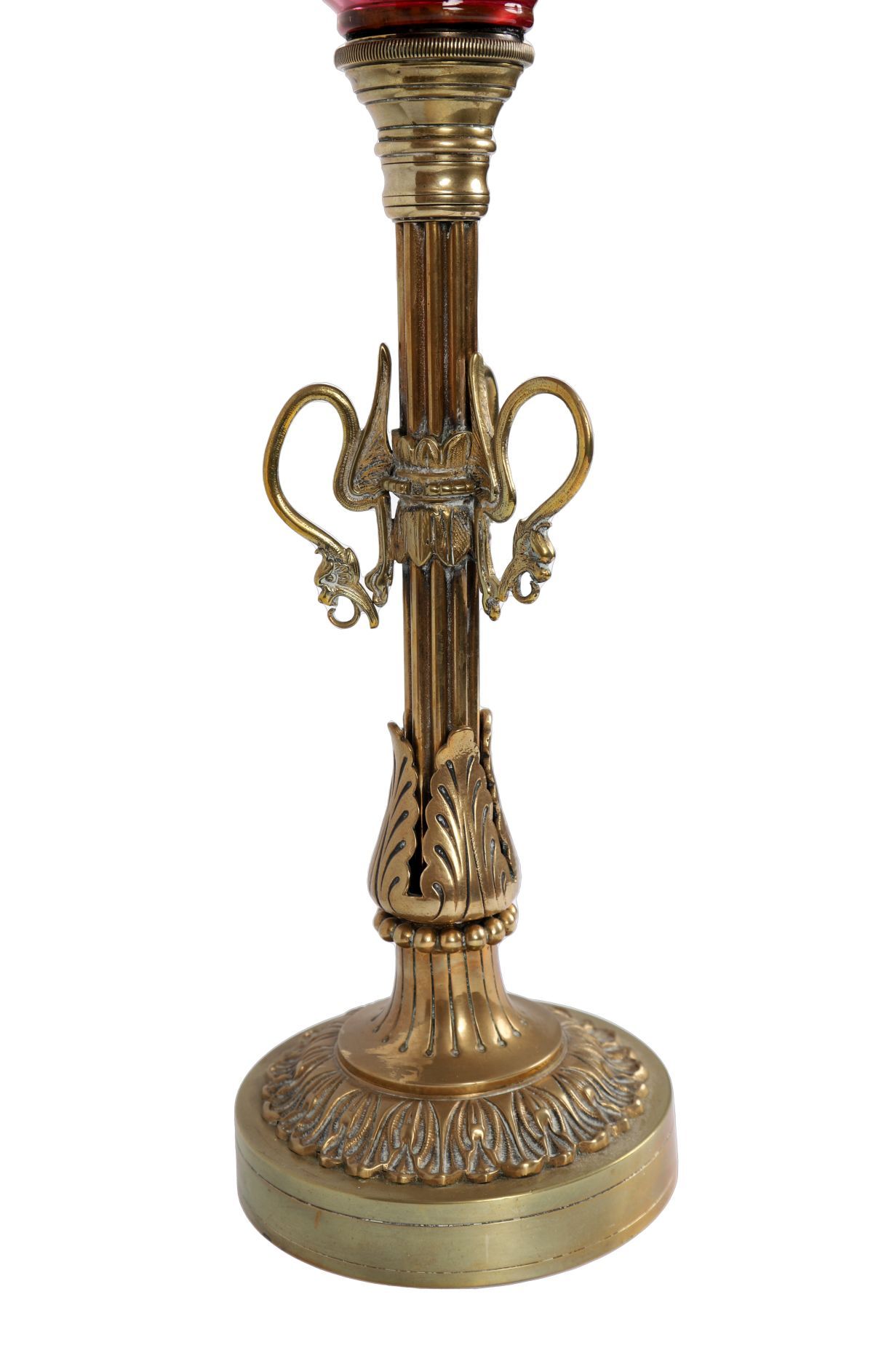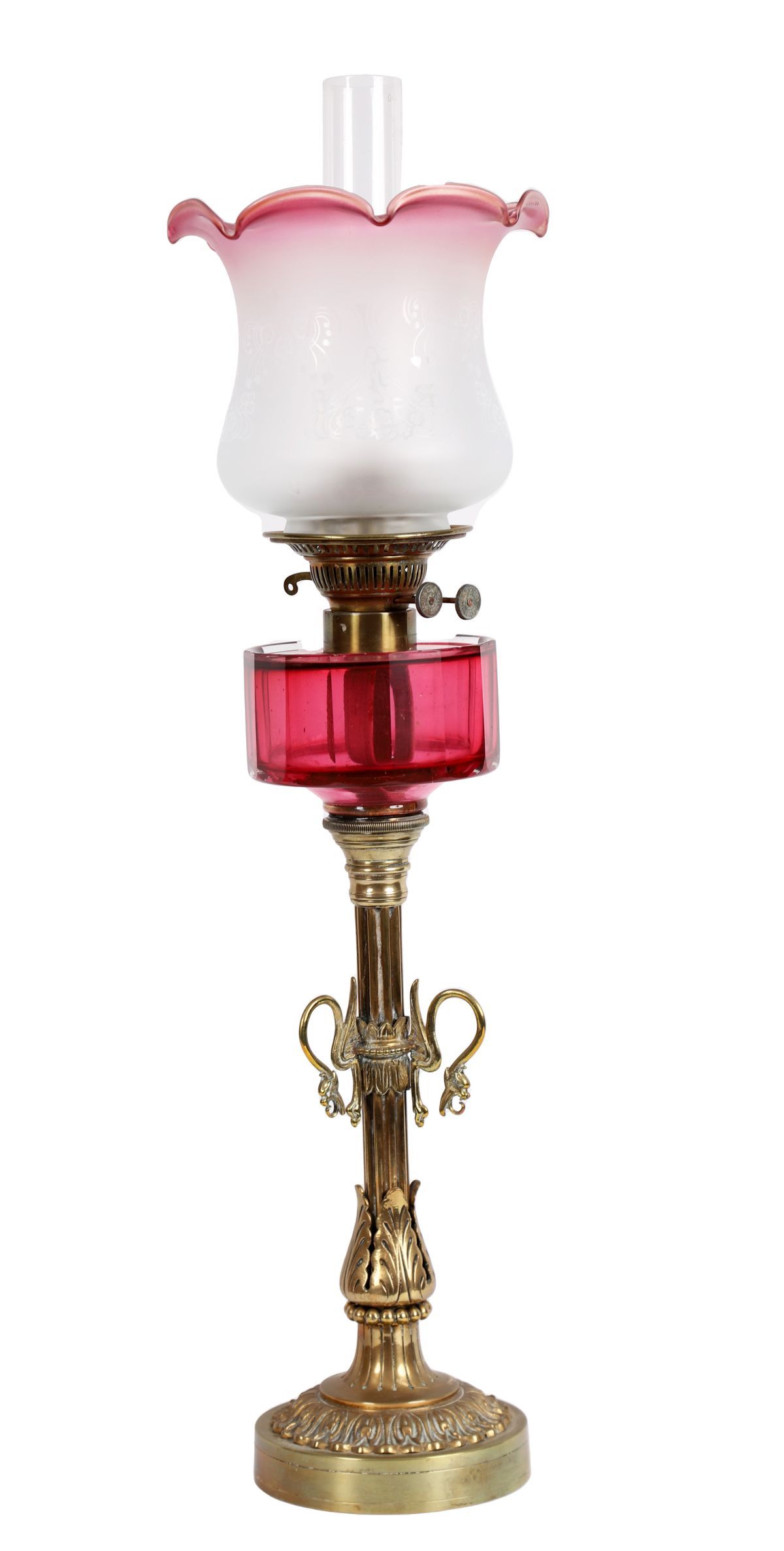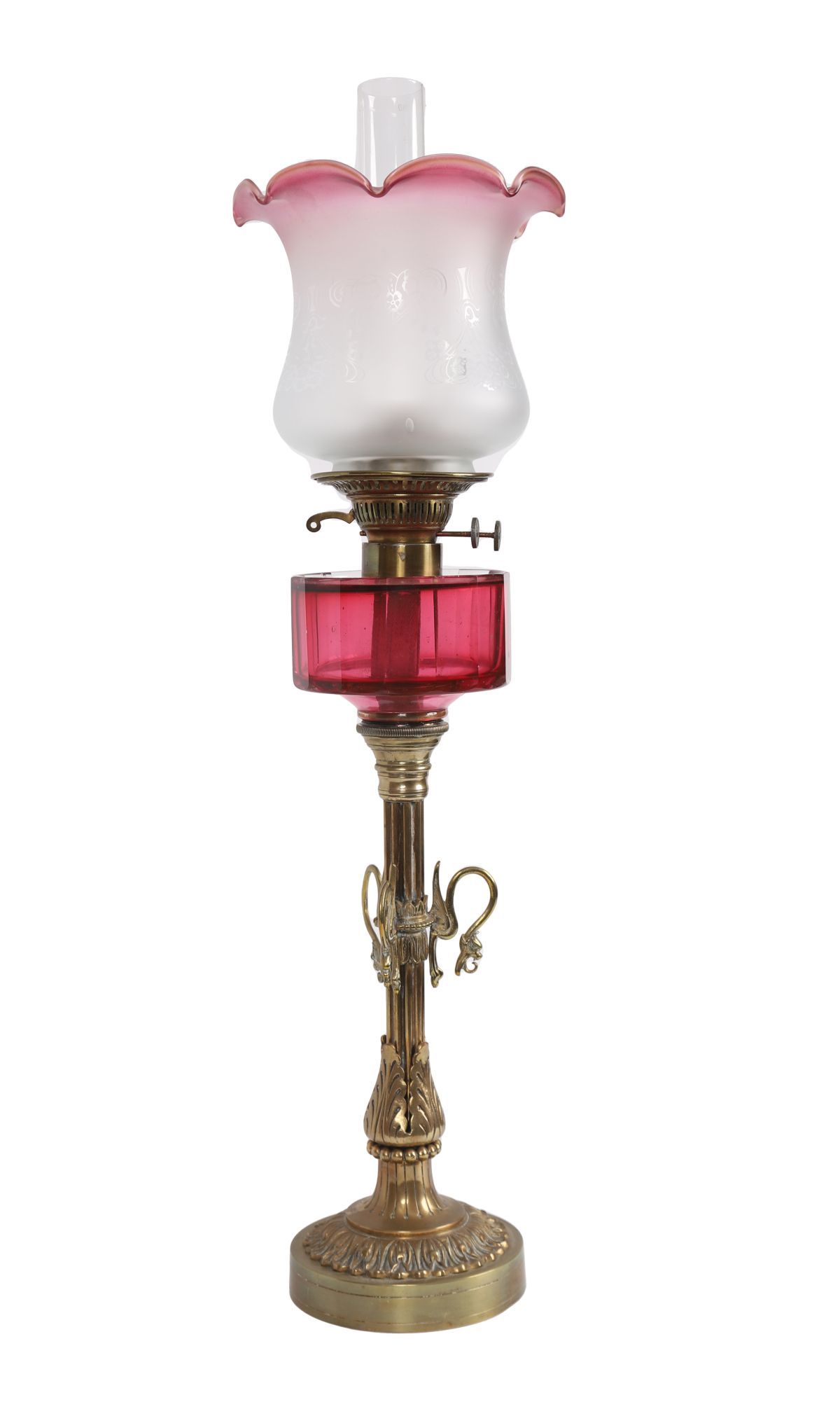 Lot 994 19TH-CENTURY BRASS AND RUBY GLASS OIL LAMP