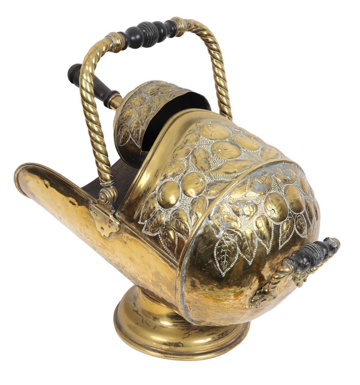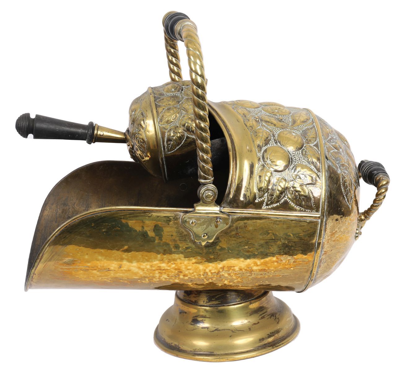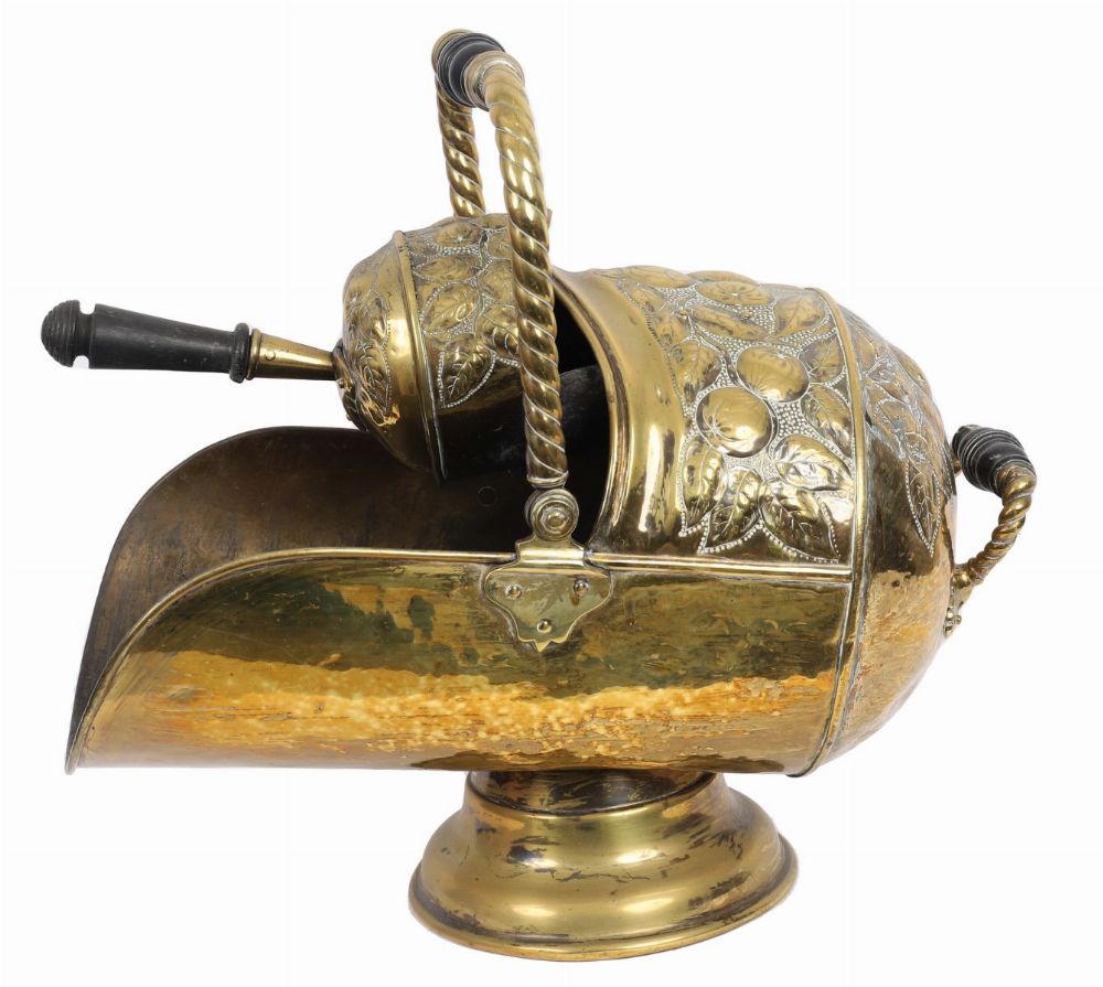 Lot 371 19TH-CENTURY BRASS COAL HELMET AND SHOVEL
