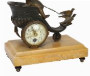 Lot 74 19TH-CENTURY BRONZED FIGURAL MANTEL CLOCK, IN THE FORM OF A SCROLLING CORNUCOPIA CHARIOT