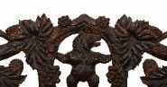 with panelled seat below an open leaf and bear carved back all supported by standing bear ends.