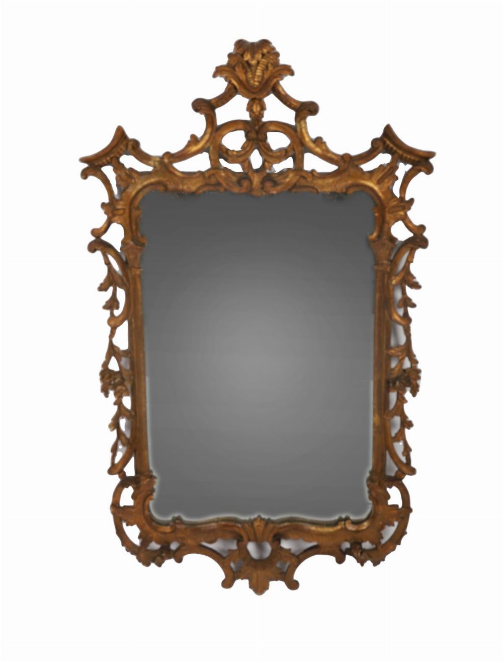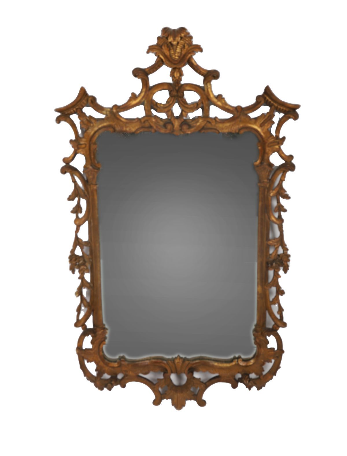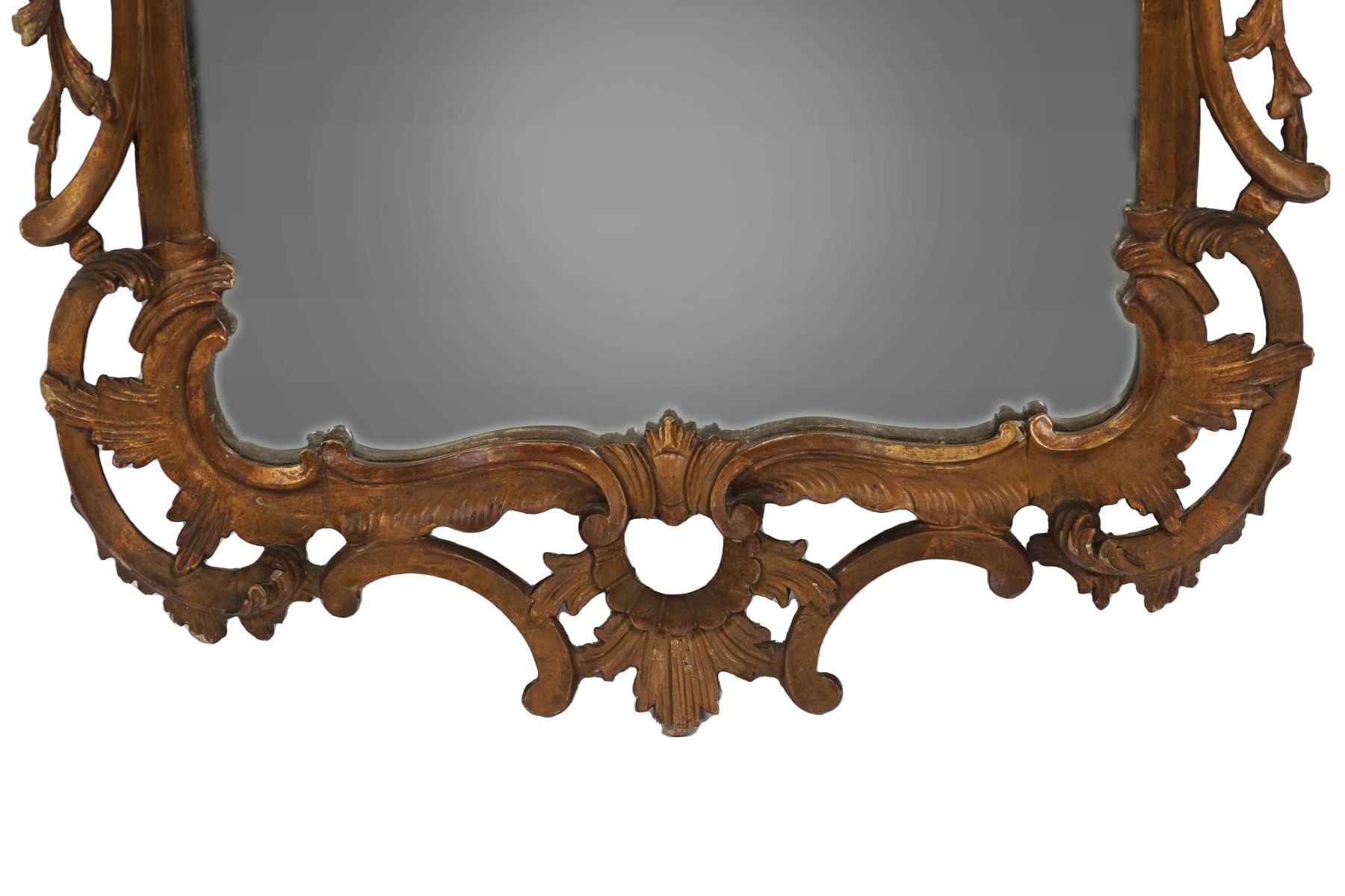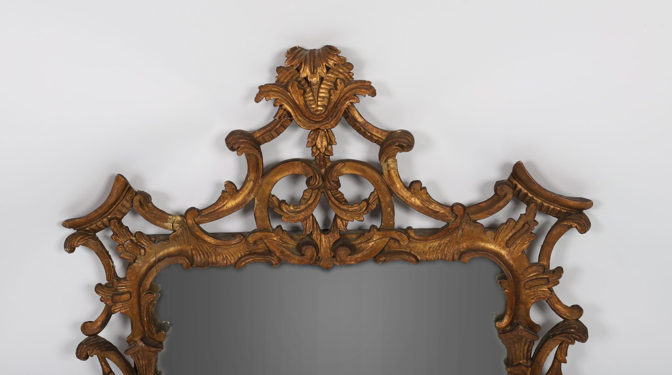 A richly carved and giltwood pier mirror, the frame with scrolling rococo ornament, leaf and shell detail, enclosing an original mirror plate.