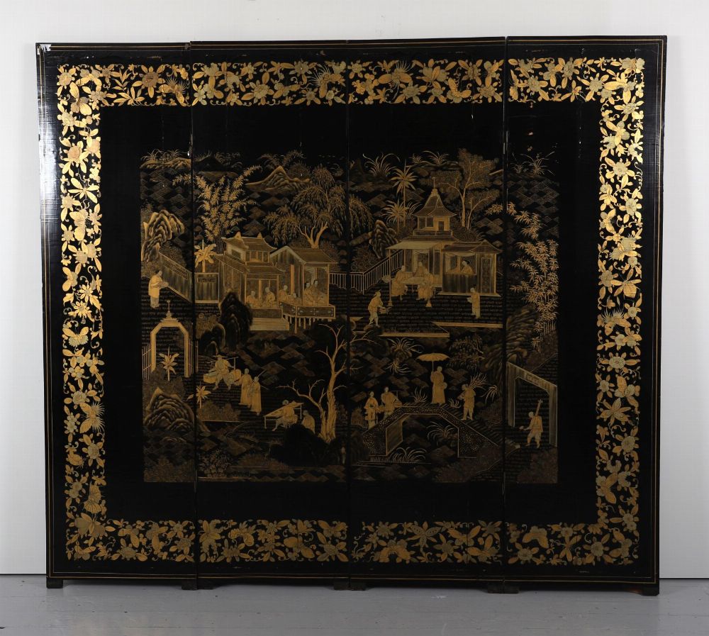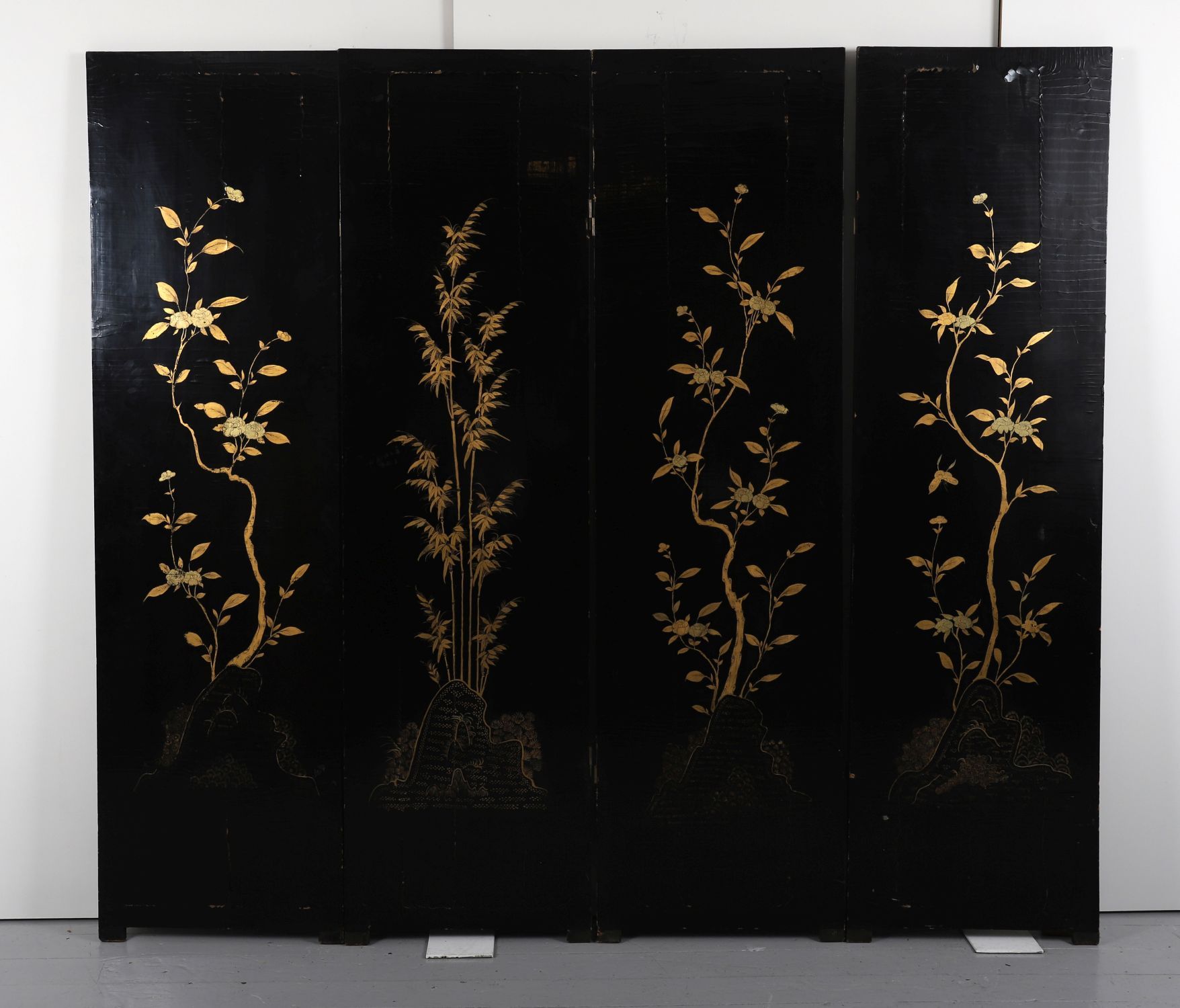 Lot 455 19TH-CENTURY CHINESE QING FOUR-PANEL LACQUERED SCREEN
