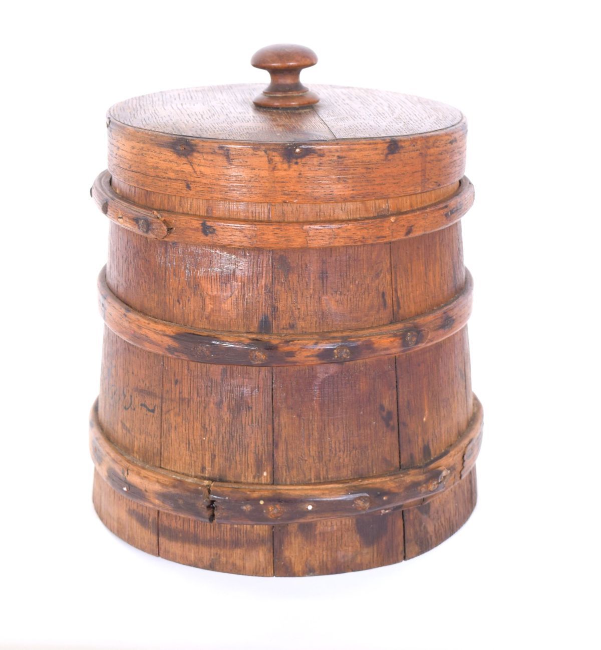 Lot 1527 19TH-CENTURY CIRCULAR STAVE FLOUR BARREL WITH COVER