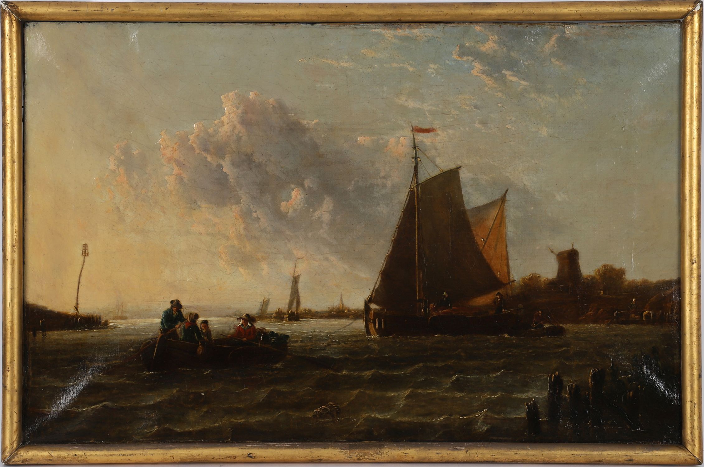 Rowing from the Ship. Oil on Canvas. Unsigned. Framed.