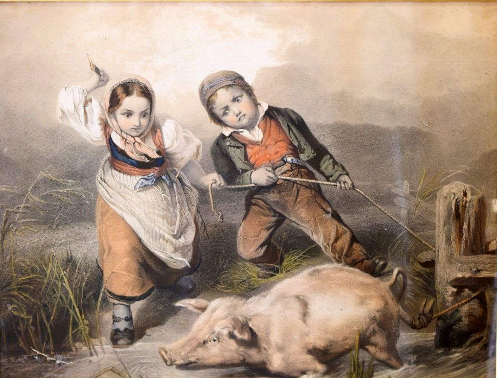 Lot 1767 19TH-CENTURY COLOURED ENGRAVING – THE PIG CATCHERS