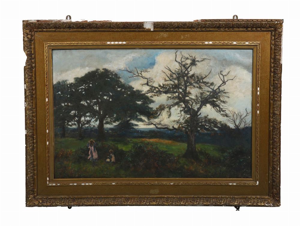 Lot 32 19TH CENTURY ENGLISH IMPRESSIONIST SCHOOL – LANDSCAPE WITH FIGURES