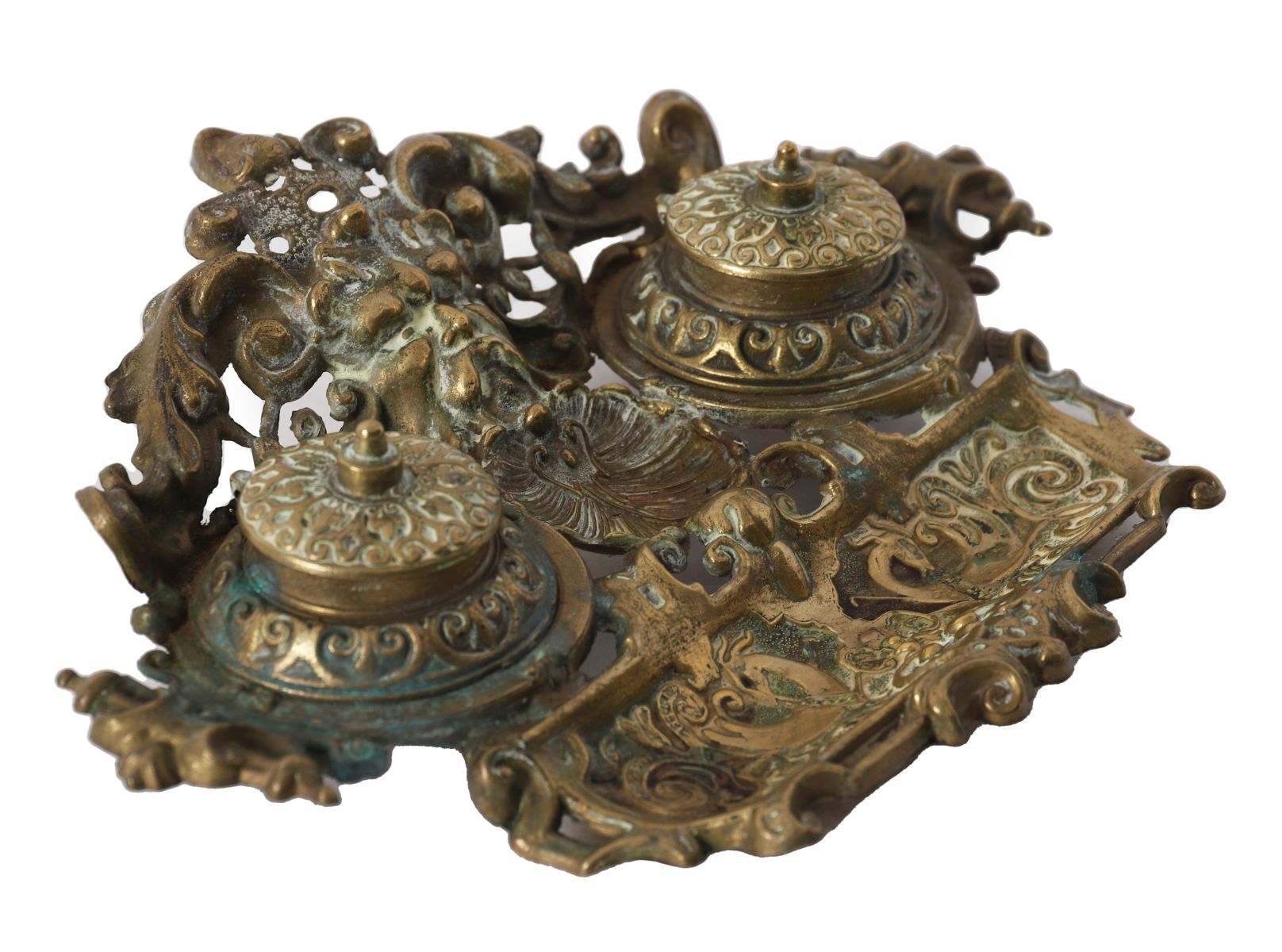 Lot 196 19TH - CENTURY FRENCH BRASS PEN AND INK STAND