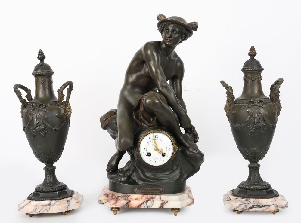Lot 1042 19TH-CENTURY FRENCH BRONZED FIGURAL CLOCK GARNITURE