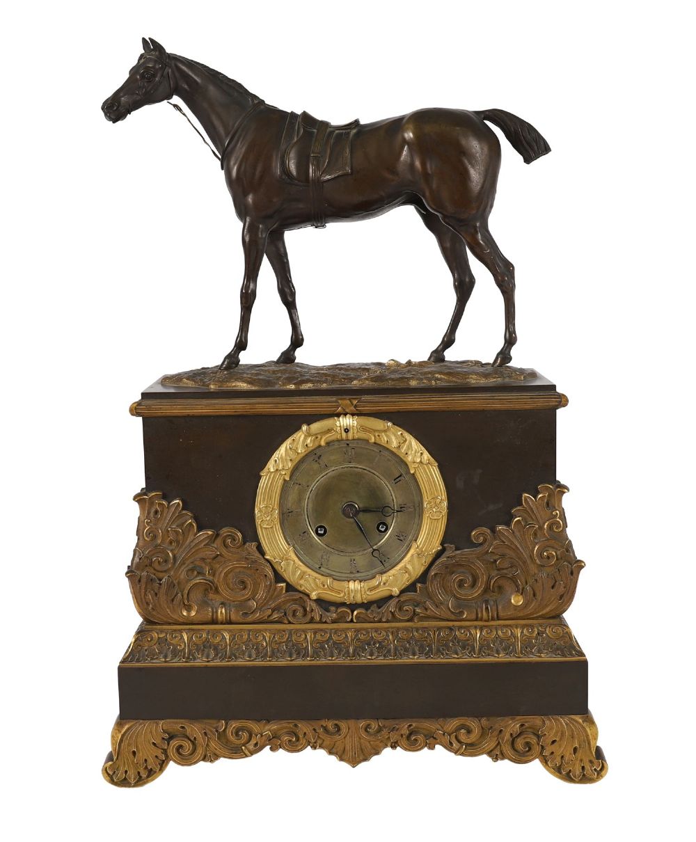 Lot 1627 19TH-CENTURY FRENCH FIGURAL MANTEL CLOCK FEATURING A PATINATED BRONZE HORSE SCULPTURE