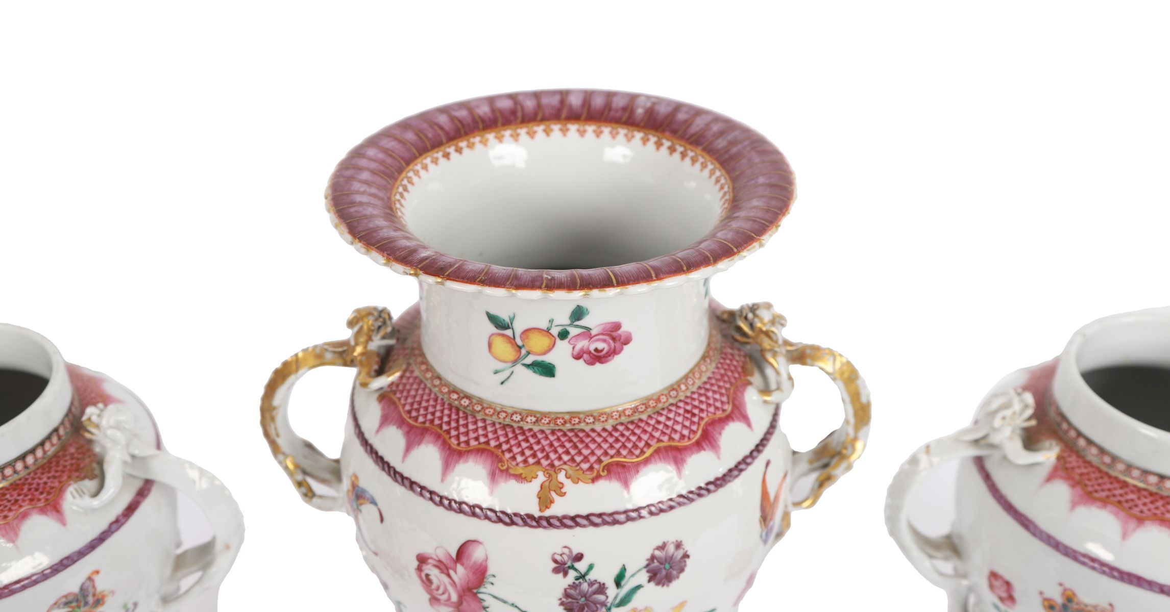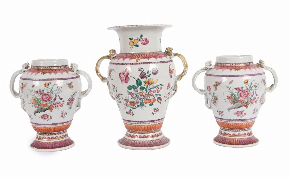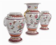 Lot 824 19TH-CENTURY GARNITURE OF CHINESE OR SAMSON POLYCHROME VASES