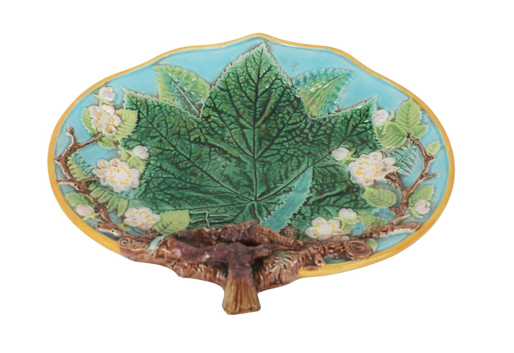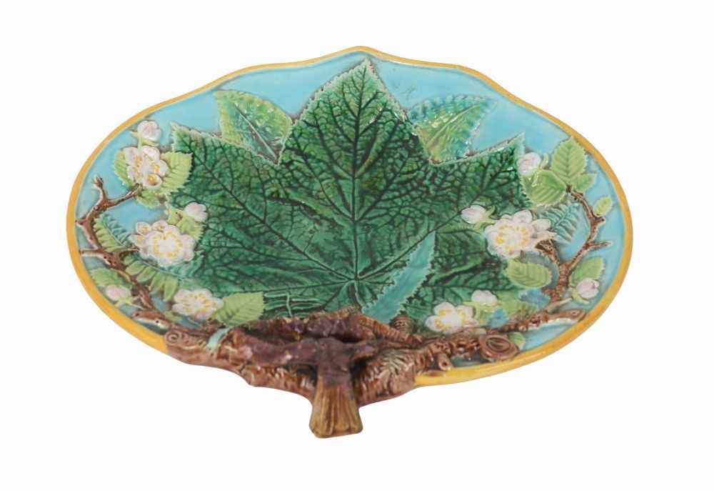 Lot 1142 19TH CENTURY GEORGE JONES MAJOLICA LEAF-SHAPED DISH