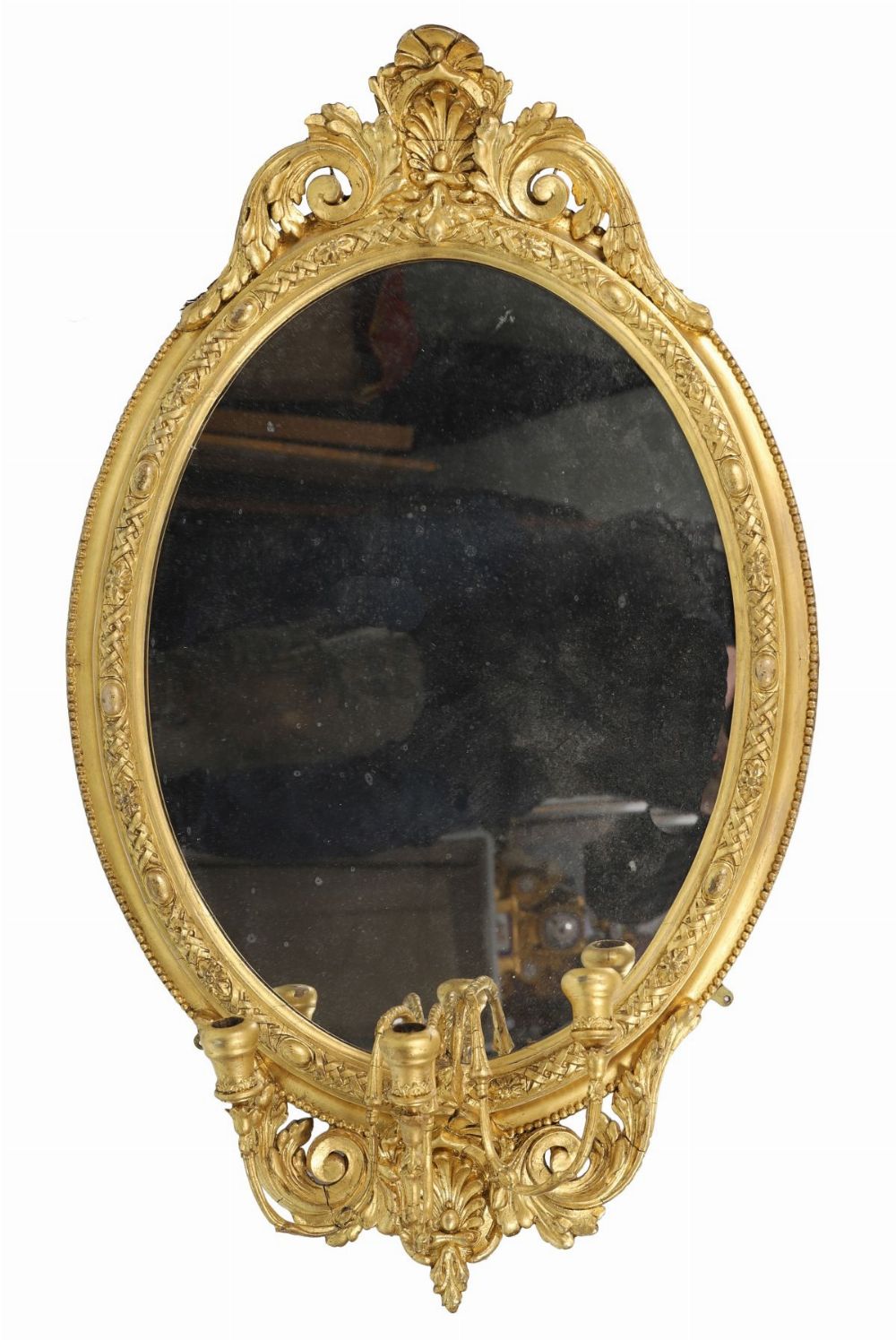 Lot 1063 19TH-CENTURY GILT FRAMED OVAL WALL MIRROR WITH CANDLE BRANCHES