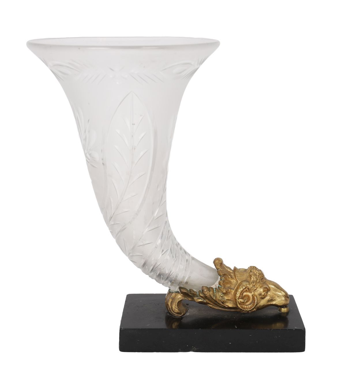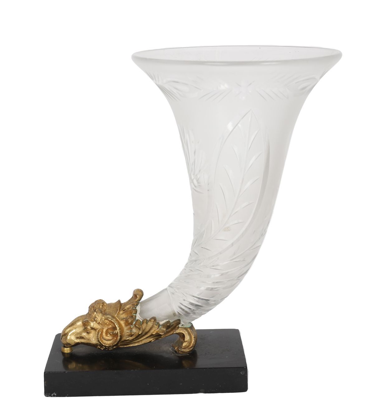 Lot 1245 19TH-CENTURY GLASS AND ORMOLU-MOUNTED CORNUCOPIA ON MARBLE BASE